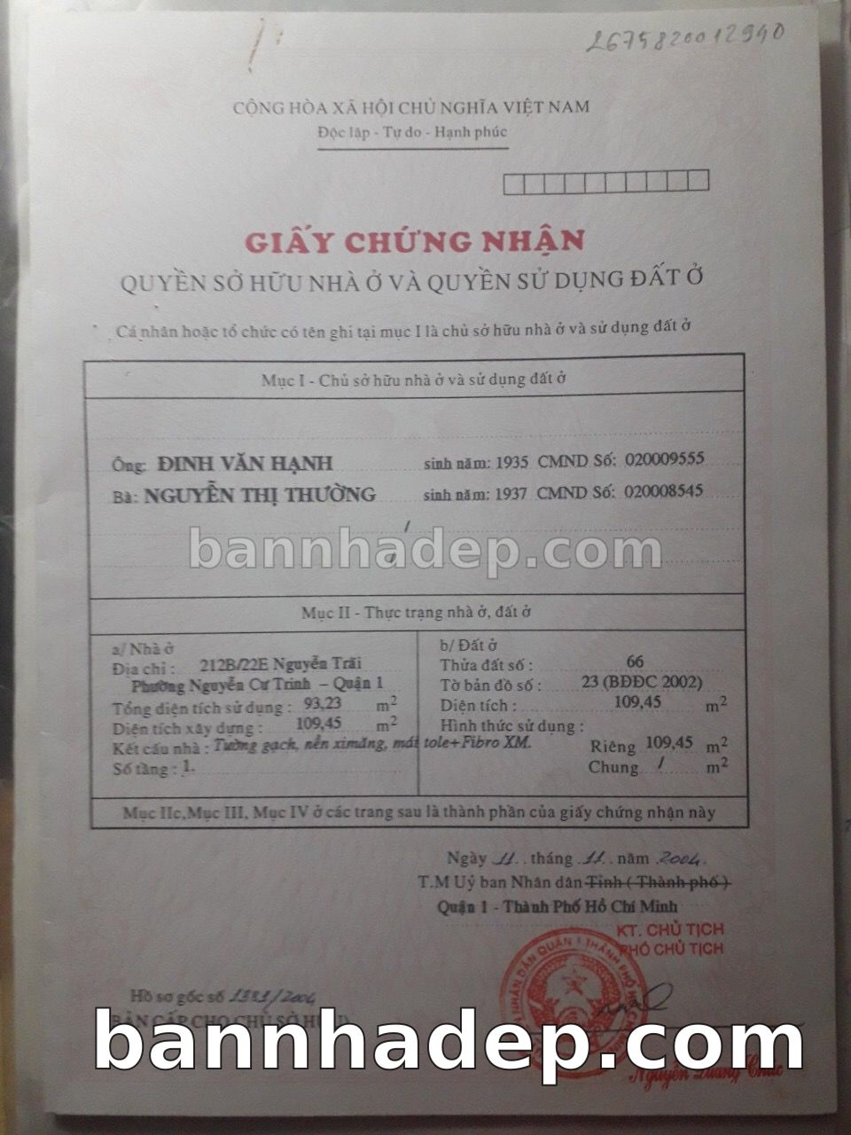 Bán nhà 212b/22e nguyễn trãi phường Nguyễn Cư Trinh quận 1