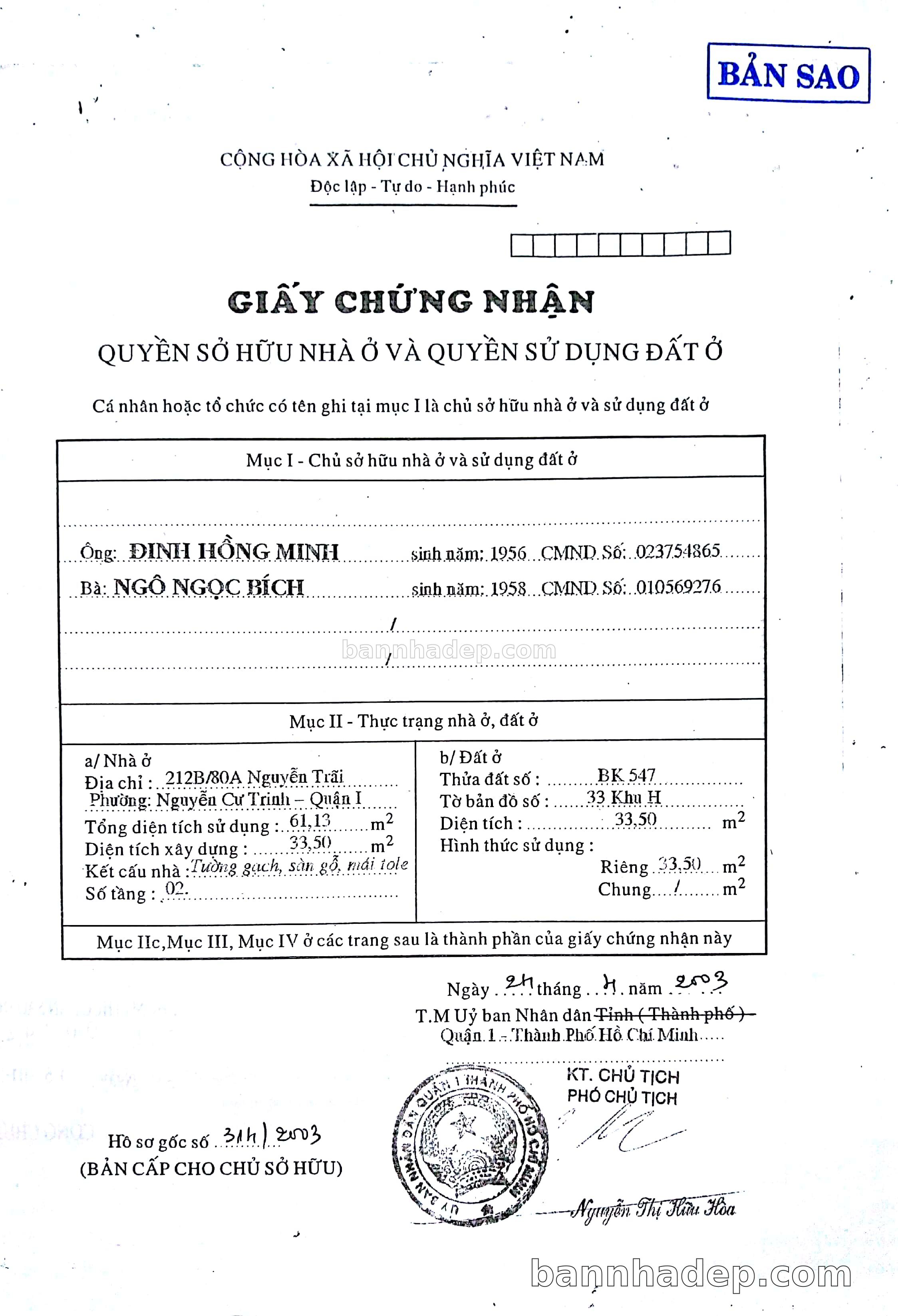 BÁN NHÀ Đường hẻm Số 212B/80A Nguyễn Trãi phường Nguyễn Cư Trinh quận 1 TP. Hồ Chí Minh – GẦN CÔNG VIÊN GIẢI TRÍ – GIÁ TỐT Cần bán gấp nhà Đường hẻm tại Số 212B/80A Nguyễn Trãi phường Nguyễn Cư Trinh quận 1 TP. Hồ Chí Minh – tiềm năng kinh doanh cao. Thông tin chi tiết: • Địa chỉ: Số 212B/80A Nguyễn Trãi phường Nguyễn Cư Trinh quận 1 TP. Hồ Chí Minh • Diện tích: như trong sổ, không gian lý tưởng • Vị trí: Đường hẻm đường Nguyễn Trãi, gần trung tâm thương mại lớn, khu vực sầm uất, tiềm năng kinh doanh cao • Pháp lý: Sổ hồng riêng, không tranh chấp, sẵn sàng giao dịch • Giá bán: Thoả Thuận (còn thương lượng với khách thiện chí) Lợi thế đặc biệt: • Vị trí trung tâm Quận 1 • Giao thông thuận tiện, kết nối các quận trung tâm • Phù hợp kinh doanh dài hạn, ổn định • Khu vực sầm uất, tiềm năng kinh doanh tốt