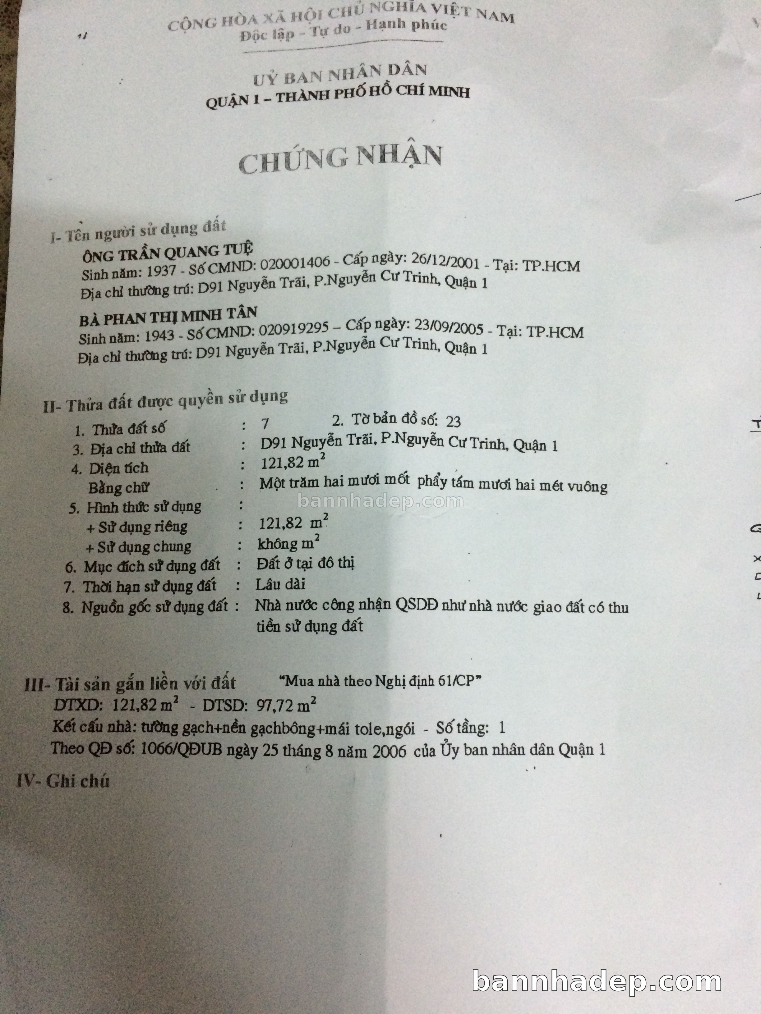 BÁN NHÀ Đường hẻm Số 212B/D91 Nguyễn Trãi phường Nguyễn Cư Trinh quận 1 TP. Hồ Chí Minh – GẦN CÔNG VIÊN GIẢI TRÍ – GIÁ TỐT Cần bán gấp nhà Đường hẻm tại Số 212B/D91 Nguyễn Trãi phường Nguyễn Cư Trinh quận 1 TP. Hồ Chí Minh – tiềm năng kinh doanh cao. Thông tin chi tiết: • Địa chỉ: Số 212B/D91 Nguyễn Trãi phường Nguyễn Cư Trinh quận 1 TP. Hồ Chí Minh • Diện tích: như trong sổ, không gian lý tưởng • Vị trí: Đường hẻm đường Nguyễn Trãi, gần trung tâm thương mại lớn, khu vực sầm uất, tiềm năng kinh doanh cao • Pháp lý: Sổ hồng riêng, không tranh chấp, sẵn sàng giao dịch • Giá bán: Thoả Thuận (còn thương lượng với khách thiện chí) Lợi thế đặc biệt: • Vị trí trung tâm Quận 1 • Giao thông thuận tiện, kết nối các quận trung tâm • Phù hợp kinh doanh dài hạn, ổn định • Khu vực sầm uất, tiềm năng kinh doanh tốt