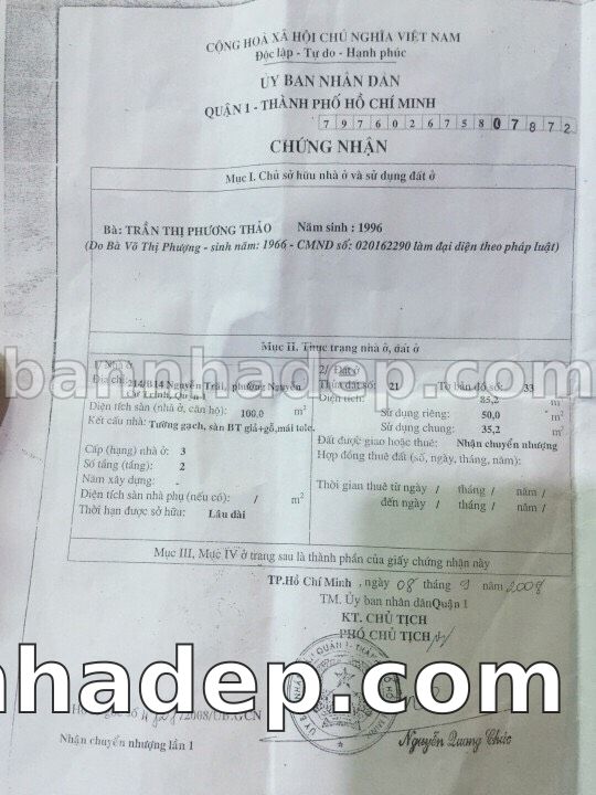 Bán nhà 212b/22e nguyễn trãi phường Nguyễn Cư Trinh quận 1