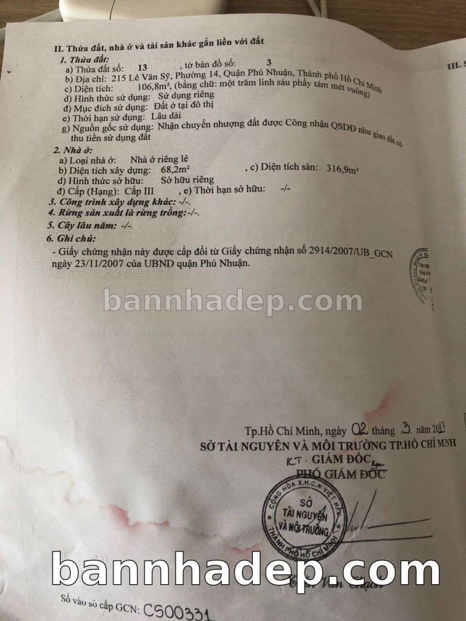 Bán nhà 150 tờ bản đồ số 1 phường 01 quận Phú Nhuận