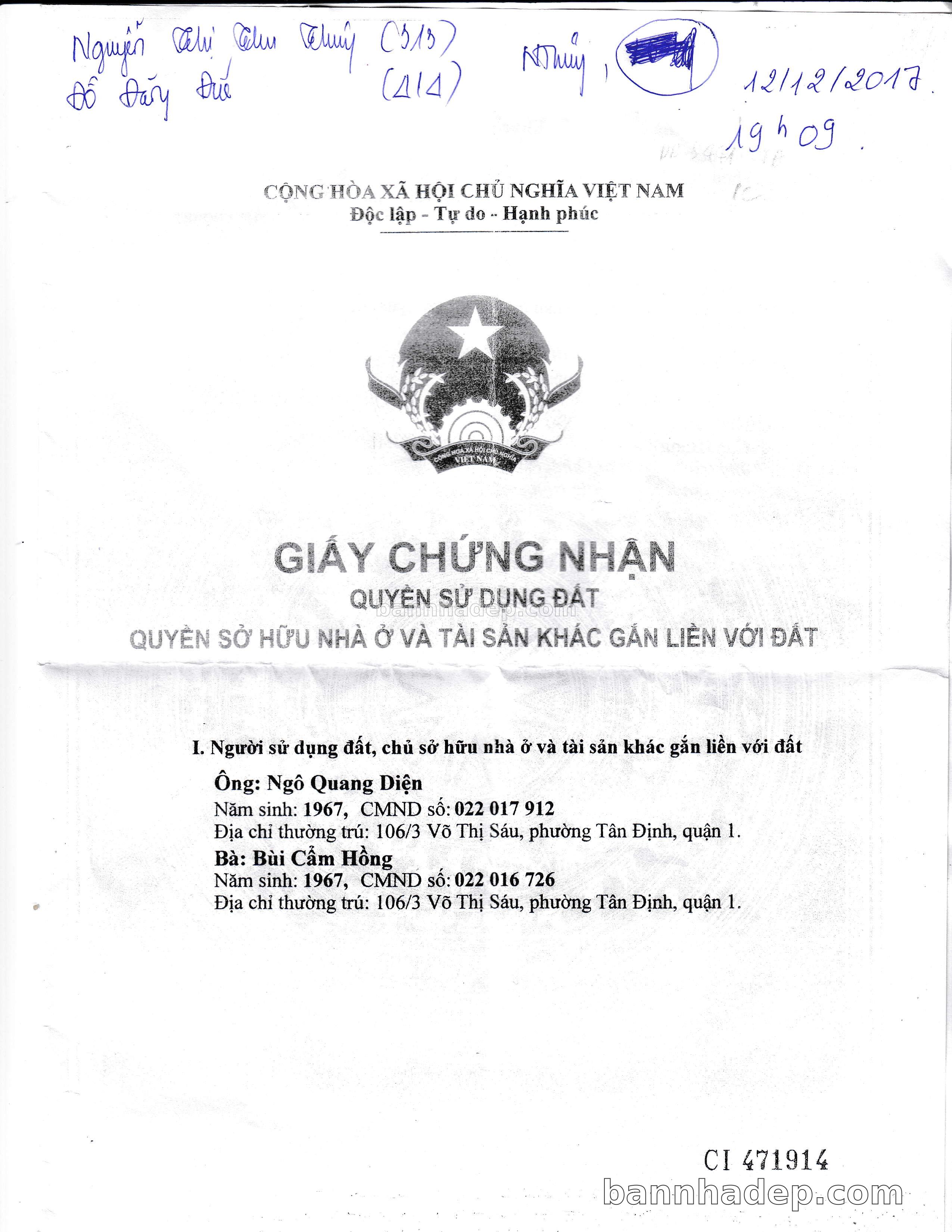 Bán nhà 18C Lý Văn Phức phường Tân Định quận 1