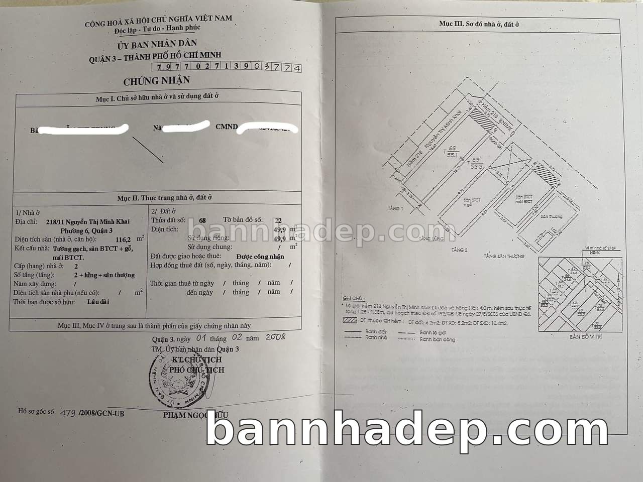 Bán nhà 218/11 Nguyễn Thị Minh Khai Võ Thị Sáu quận 3