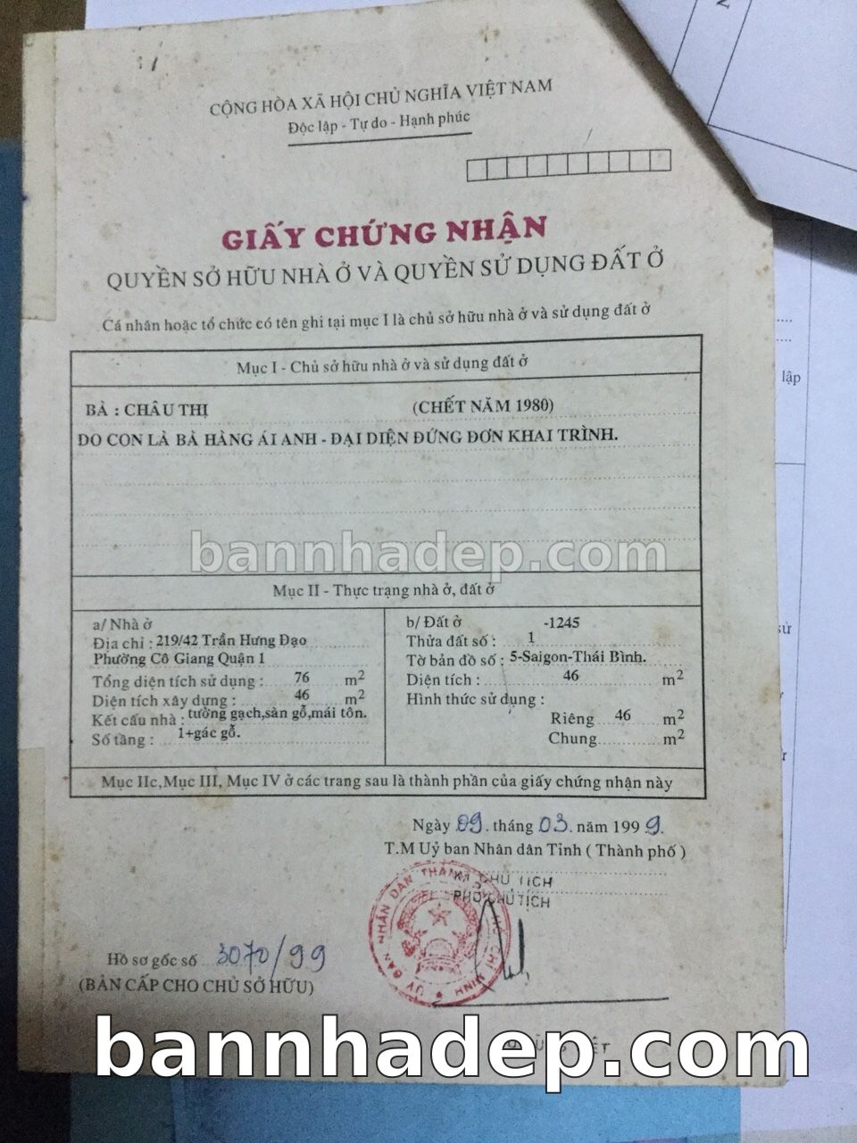 BÁN NHÀ Đường hẻm Số 219/42 Trần Hưng Đạo phường Cô Giang quận 1 TP. Hồ Chí Minh – GẦN CÔNG VIÊN GIẢI TRÍ – GIÁ TỐT Cần bán gấp nhà Đường hẻm tại Số 219/42 Trần Hưng Đạo phường Cô Giang quận 1 TP. Hồ Chí Minh – tiềm năng kinh doanh cao. Thông tin chi tiết: • Địa chỉ: Số 219/42 Trần Hưng Đạo phường Cô Giang quận 1 TP. Hồ Chí Minh • Diện tích: như trong sổ, không gian lý tưởng • Vị trí: Đường hẻm đường Trần Hưng Đạo, gần trung tâm thương mại lớn, khu vực sầm uất, tiềm năng kinh doanh cao • Pháp lý: Sổ hồng riêng, không tranh chấp, sẵn sàng giao dịch • Giá bán: Thoả Thuận (còn thương lượng với khách thiện chí) Lợi thế đặc biệt: • Vị trí trung tâm Quận 1 • Giao thông thuận tiện, kết nối các quận trung tâm • Phù hợp kinh doanh dài hạn, ổn định • Khu vực sầm uất, tiềm năng kinh doanh tốt