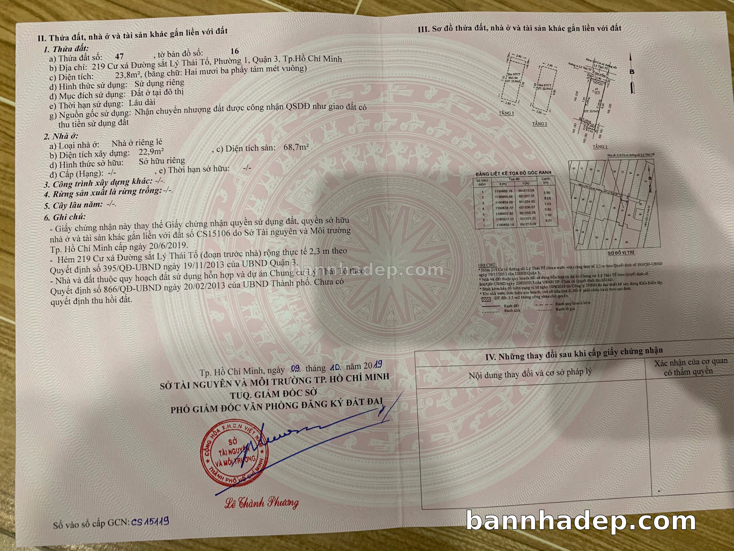 Bán nhà 219 Lý Thái Tổ phường 01 quận 3