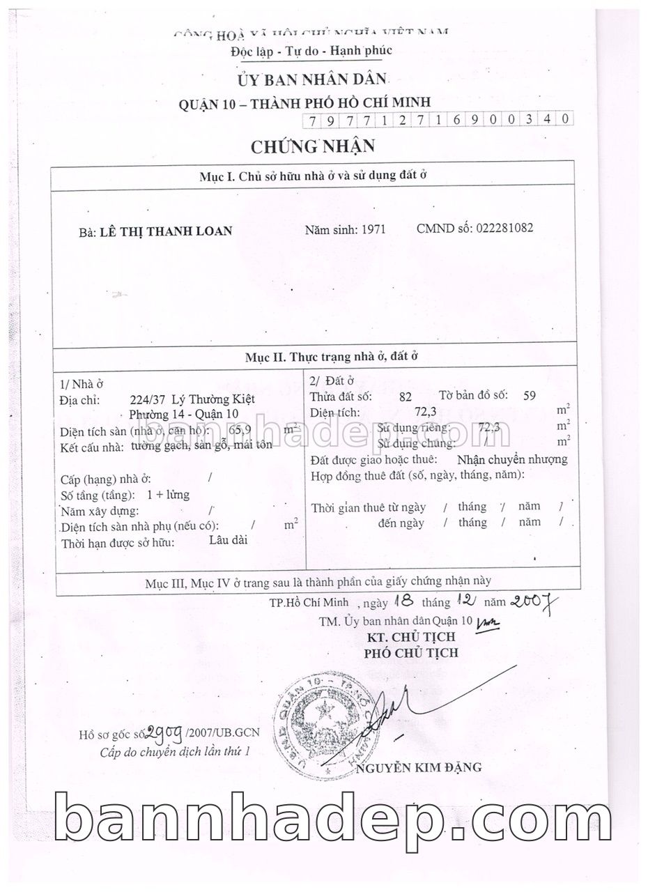 Bán nhà 224/37 Lý Thường Kiệt phường 01 quận 10