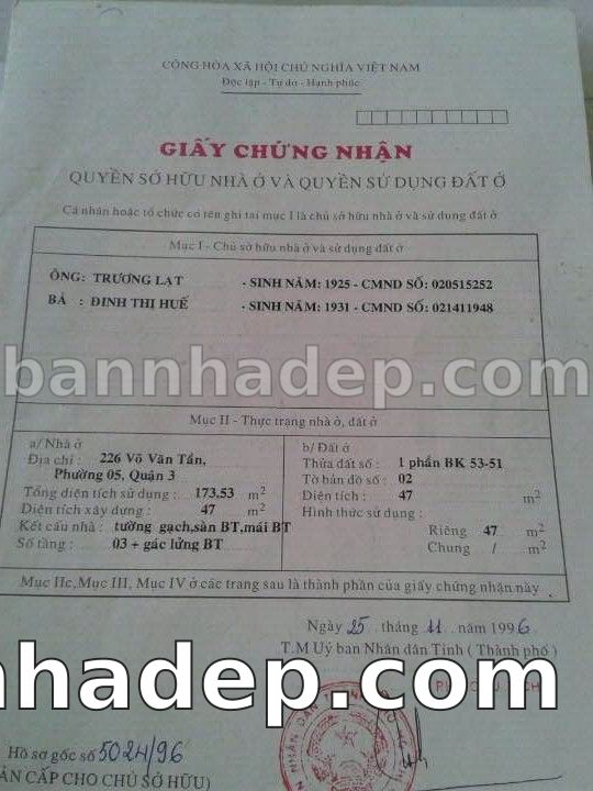Bán nhà 226 Võ Văn Tần phường 05 quận 3
