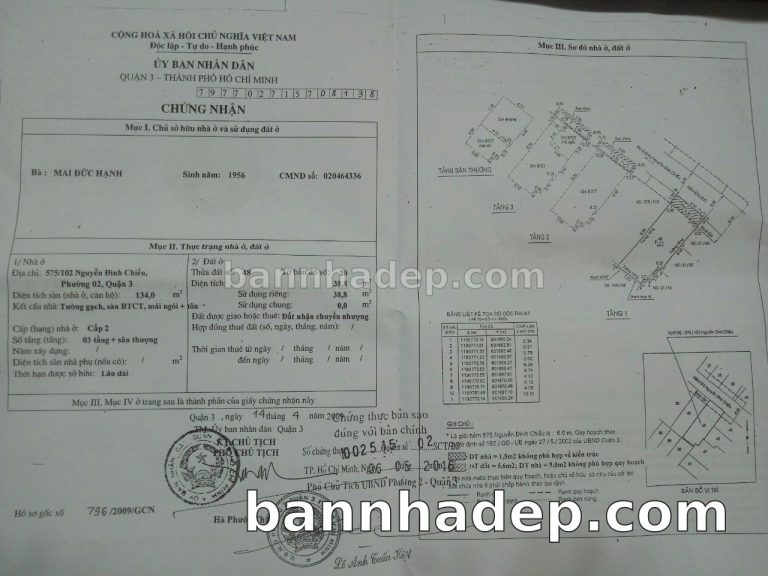 Bán nhà 575/100-102 Nguyễn Đình Chiểu phường 05 quận 3