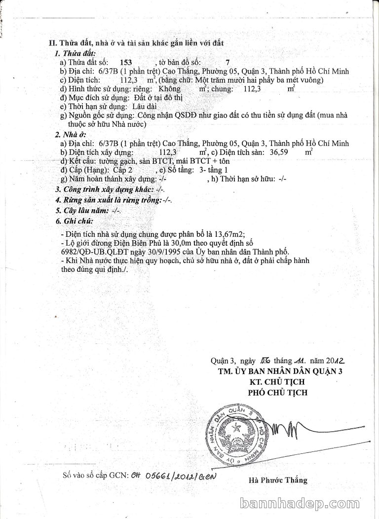 Bán nhà 6/37B Cao Thắng phường 05 quận 3