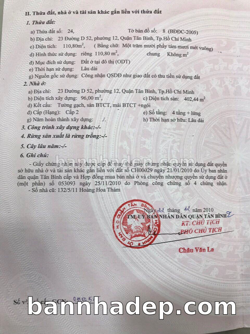 BÁN NHÀ Mặt tiền Số 23 Đường D52 phường 01 quận Tân Bình TP. Hồ Chí Minh – GẦN CÔNG VIÊN GIẢI TRÍ – GIÁ TỐT Cần bán gấp nhà Mặt tiền tại Số 23 Đường D52 phường 01 quận Tân Bình TP. Hồ Chí Minh – tiềm năng kinh doanh cao. Thông tin chi tiết: • Địa chỉ: Số 23 Đường D52 phường 01 quận Tân Bình TP. Hồ Chí Minh • Diện tích: như trong sổ, không gian lý tưởng • Vị trí: Mặt tiền đường Đường D52, gần trung tâm thương mại lớn, khu vực sầm uất, tiềm năng kinh doanh cao • Pháp lý: Sổ hồng riêng, không tranh chấp, sẵn sàng giao dịch • Giá bán: Thoả Thuận (còn thương lượng với khách thiện chí) Lợi thế đặc biệt: • Vị trí trung tâm Quận Tân Bình • Giao thông thuận tiện, kết nối các quận trung tâm • Phù hợp kinh doanh dài hạn, ổn định • Khu vực sầm uất, tiềm năng kinh doanh tốt