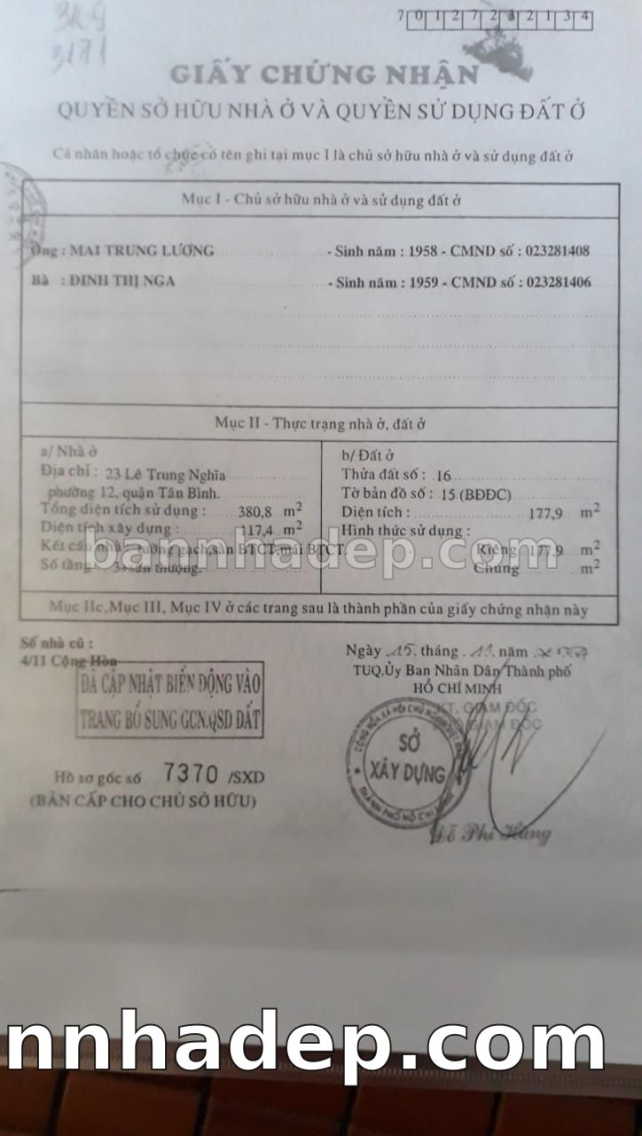 BÁN NHÀ Mặt tiền Số 23 Lê Trung Nghĩa phường 01 quận Tân Bình TP. Hồ Chí Minh – GẦN CÔNG VIÊN GIẢI TRÍ – GIÁ TỐT Cần bán gấp nhà Mặt tiền tại Số 23 Lê Trung Nghĩa phường 01 quận Tân Bình TP. Hồ Chí Minh – tiềm năng kinh doanh cao. Thông tin chi tiết: • Địa chỉ: Số 23 Lê Trung Nghĩa phường 01 quận Tân Bình TP. Hồ Chí Minh • Diện tích: như trong sổ, không gian lý tưởng • Vị trí: Mặt tiền đường Lê Trung Nghĩa, gần trung tâm thương mại lớn, khu vực sầm uất, tiềm năng kinh doanh cao • Pháp lý: Sổ hồng riêng, không tranh chấp, sẵn sàng giao dịch • Giá bán: Thoả Thuận (còn thương lượng với khách thiện chí) Lợi thế đặc biệt: • Vị trí trung tâm Quận Tân Bình • Giao thông thuận tiện, kết nối các quận trung tâm • Phù hợp kinh doanh dài hạn, ổn định • Khu vực sầm uất, tiềm năng kinh doanh tốt