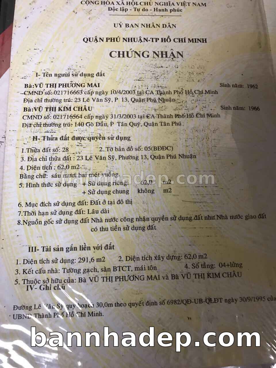 Bán nhà 23 Lê Văn Sỹ phường 01 quận Phú Nhuận