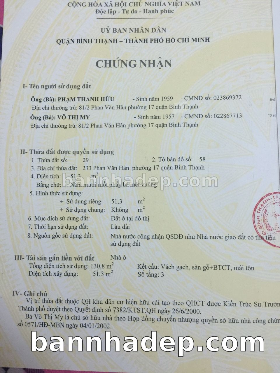 Bán nhà Thửa đất số 250, Tờ bản đồ 37 Nguyễn Ngọc Phương phường 01 quận Bình Thạnh
