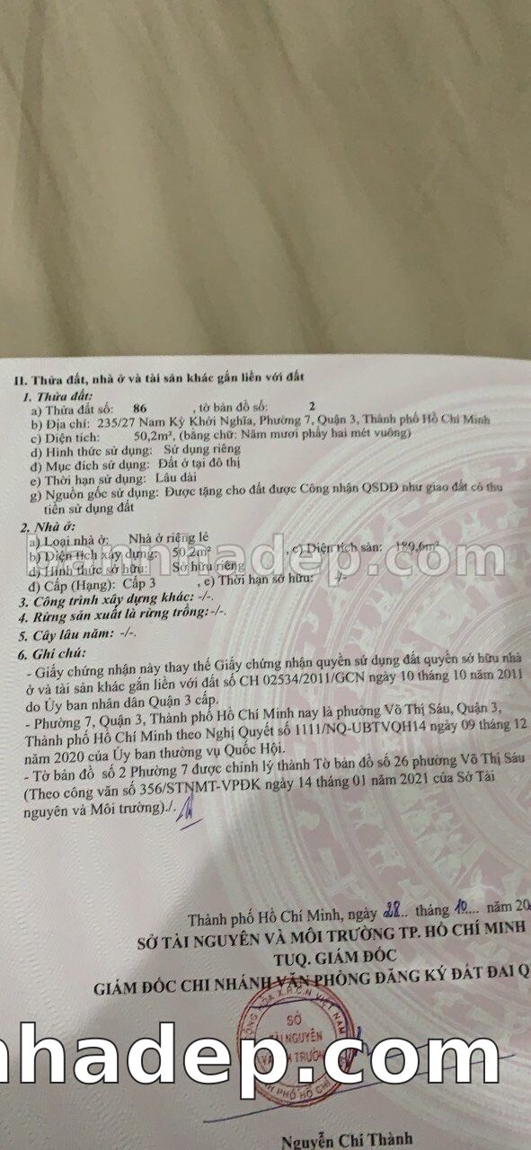 BÁN NHÀ MẶT TIỀN Số 235/27 Nam Kỳ Khởi Nghĩa Phường Võ Thị Sáu Quận 3 TP. Hồ Chí Minh – GẦN BỆNH VIỆN – GIÁ TỐT 8,7 TỶ Bán nhà mặt tiền tại Số 235/27 Nam Kỳ Khởi Nghĩa Phường Võ Thị Sáu Quận 3 TP. Hồ Chí Minh. Thông tin chi tiết: • Địa chỉ: Số 235/27 Nam Kỳ Khởi Nghĩa Phường Võ Thị Sáu Quận 3 TP. Hồ Chí Minh • Diện tích: 3.0m x 18.0m, không gian lý tưởng • Vị trí: Mặt tiền đường Nam Kỳ Khởi Nghĩa, gần trung tâm thương mại lớn, khu vực đông dân cư, tiềm năng kinh doanh tốt • Pháp lý: Sổ hồng riêng, công chứng sang tên trong ngày • Giá bán: 8,7 Tỷ (có thể thương lượng) Lợi thế đặc biệt: • Khu vực sầm uất, tiềm năng kinh doanh tốt • Phù hợp kinh doanh đa dạng ngành nghề • Phù hợp kinh doanh dài hạn, ổn định • Vị trí trung tâm Quận 3, thuận tiện kết nối Quận 1, 2, 7