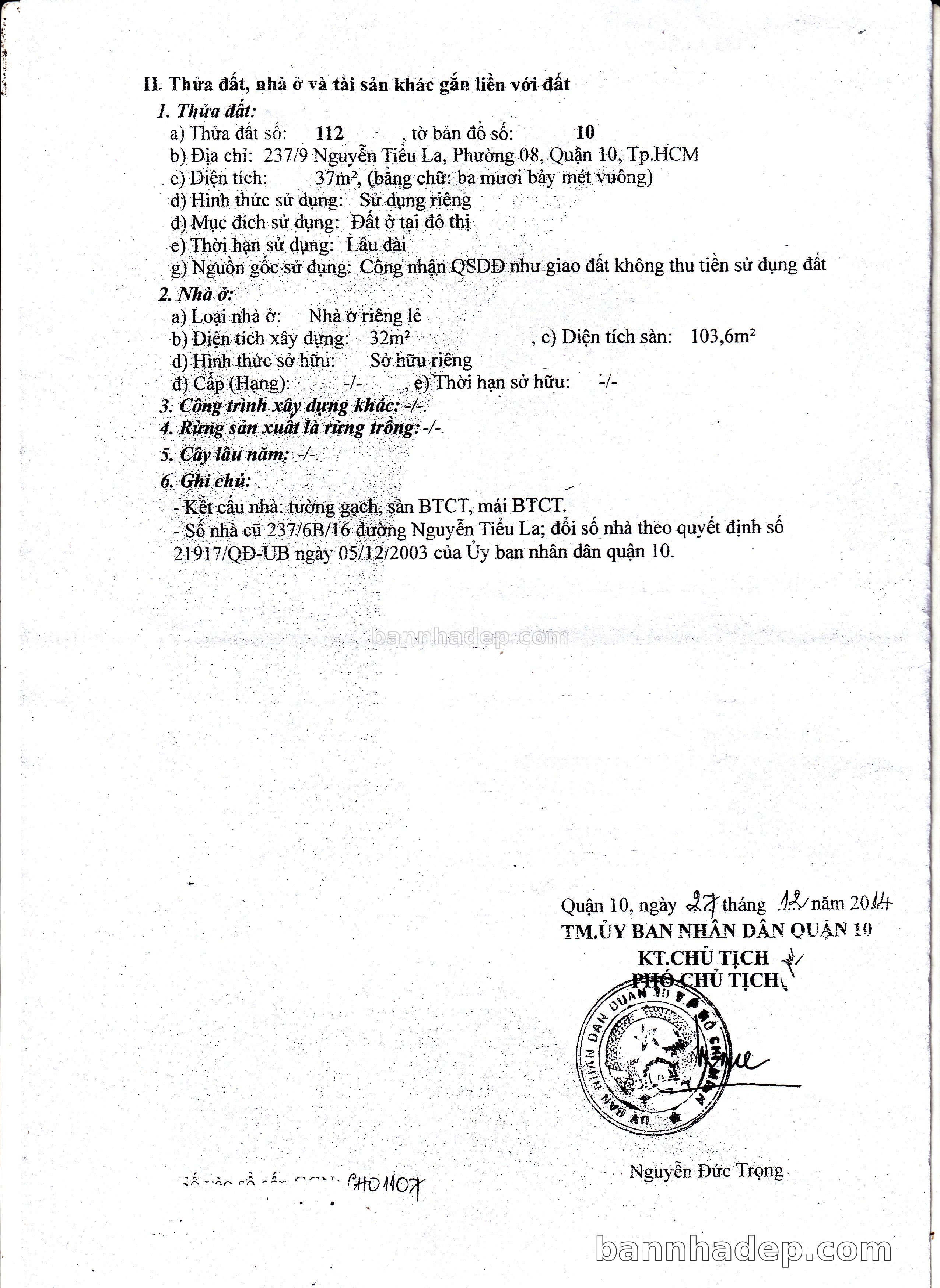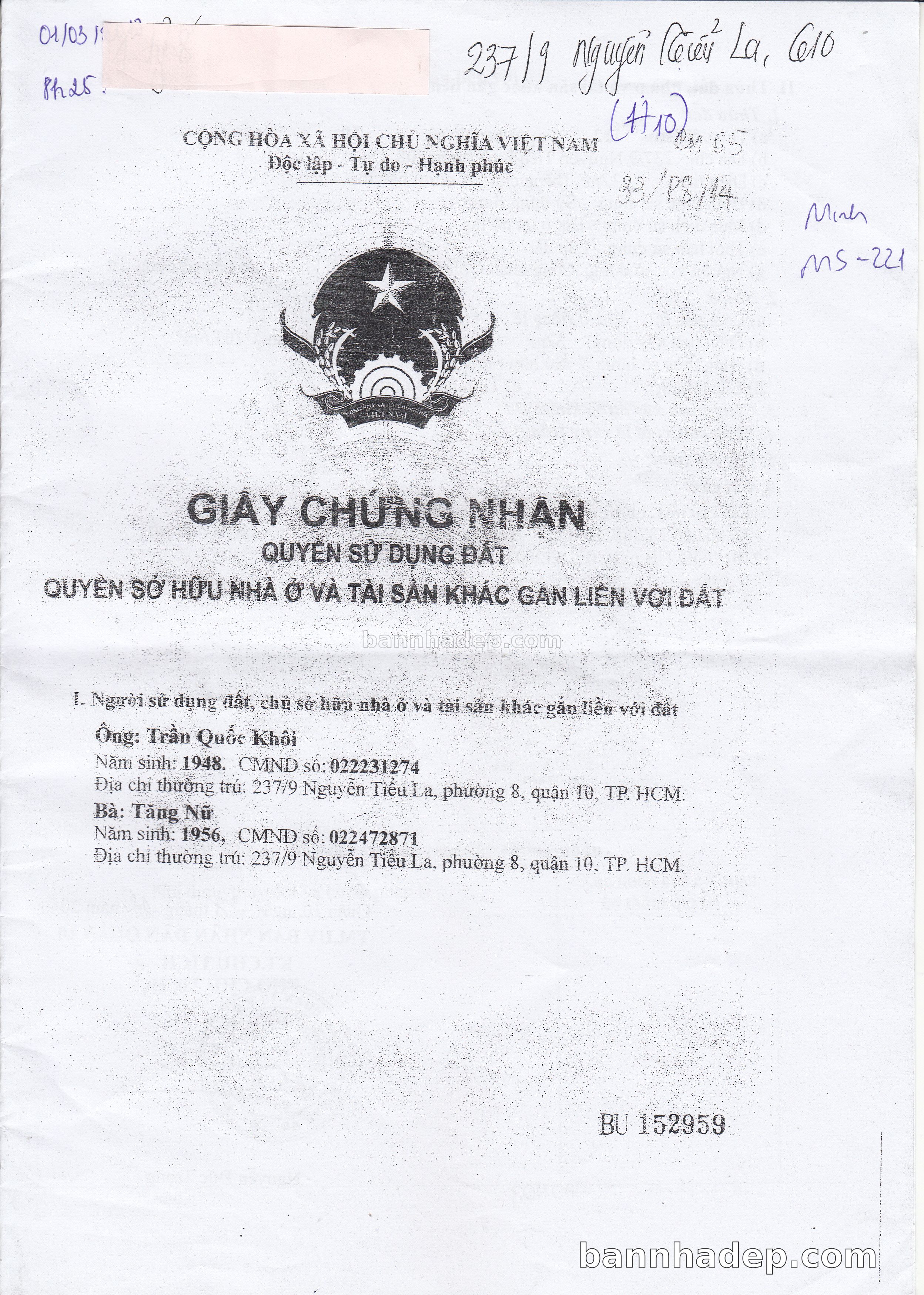 Bán nhà 237/9 Nguyễn Tiểu La phường 08 quận 10