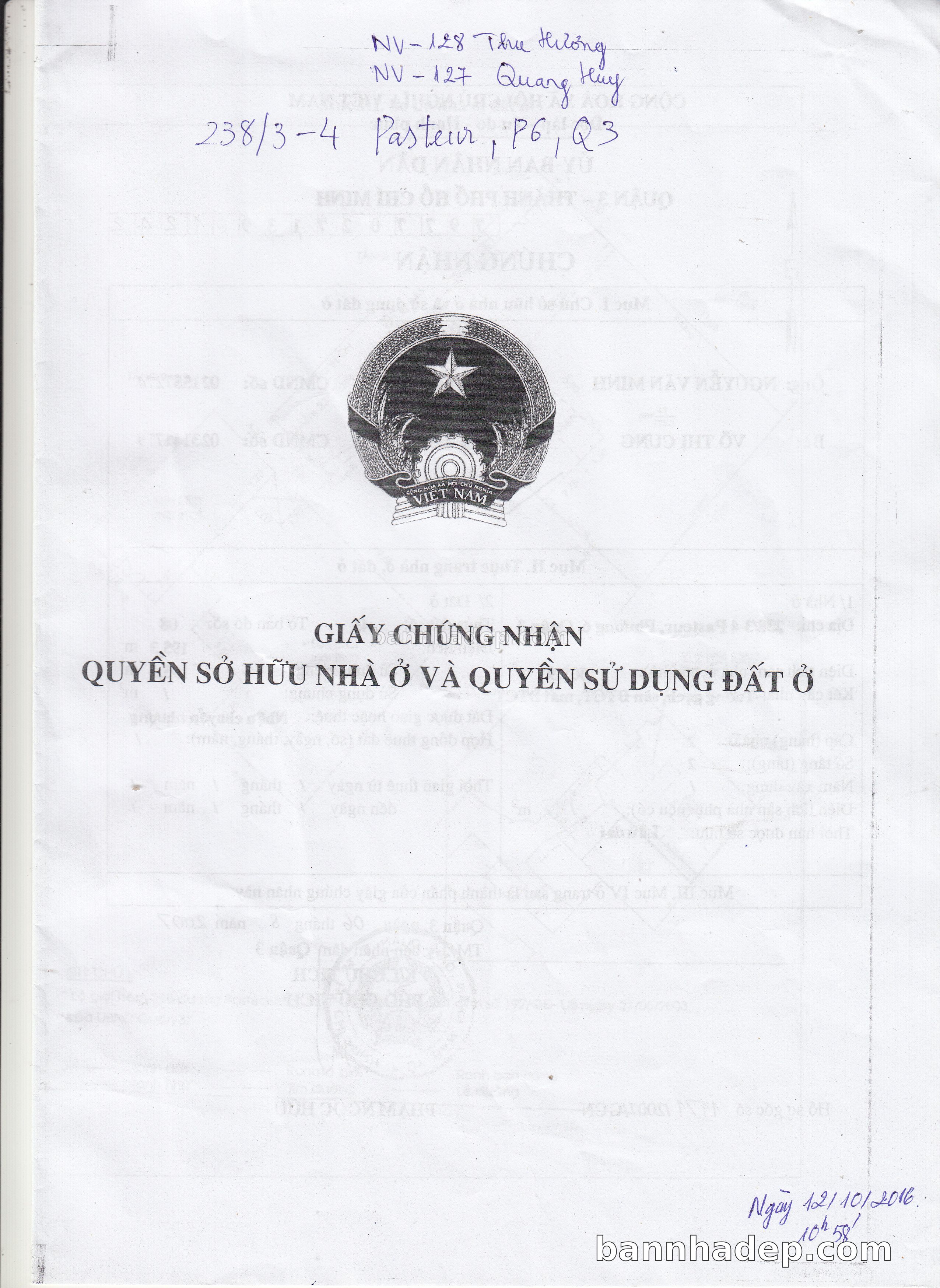 Bán nhà 238/3-4 Pasteur phường 06 quận 3