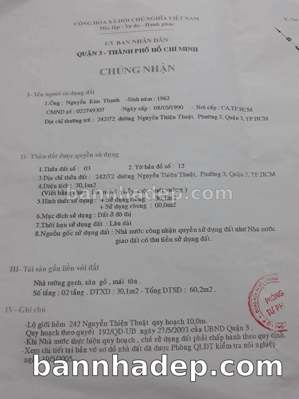 BÁN NHÀ Đường hẻm Số 242/72 Nguyễn Thiện Thuật phường 03 quận 3 TP. Hồ Chí Minh – GẦN CÔNG VIÊN GIẢI TRÍ – GIÁ TỐT Cần bán gấp nhà Đường hẻm tại Số 242/72 Nguyễn Thiện Thuật phường 03 quận 3 TP. Hồ Chí Minh – tiềm năng kinh doanh cao. Thông tin chi tiết: • Địa chỉ: Số 242/72 Nguyễn Thiện Thuật phường 03 quận 3 TP. Hồ Chí Minh • Diện tích: như trong sổ, không gian lý tưởng • Vị trí: Đường hẻm đường Nguyễn Thiện Thuật, gần trung tâm thương mại lớn, khu vực sầm uất, tiềm năng kinh doanh cao • Pháp lý: Sổ hồng riêng, không tranh chấp, sẵn sàng giao dịch • Giá bán: Thoả Thuận (còn thương lượng với khách thiện chí) Lợi thế đặc biệt: • Vị trí trung tâm Quận 3 • Giao thông thuận tiện, kết nối các quận trung tâm • Phù hợp kinh doanh dài hạn, ổn định • Khu vực sầm uất, tiềm năng kinh doanh tốt