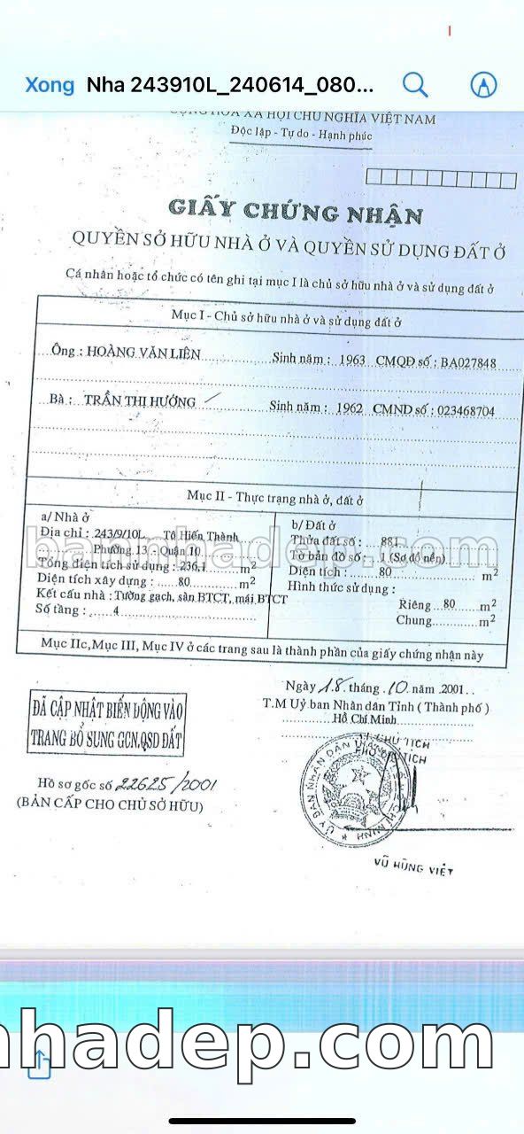CẦN BÁN GẤP NHÀ MẶT TIỀN Số 243/9/10L Tô Hiến Thành Phường 13 Quận 10 TP. Hồ Chí Minh – GẦN BỆNH VIỆN – GIÁ 18,5 TỶ Bán nhà mặt tiền tại Số 243/9/10L Tô Hiến Thành Phường 13 Quận 10 TP. Hồ Chí Minh – vị trí đắc địa. Thông tin chi tiết: • Địa chỉ: Số 243/9/10L Tô Hiến Thành Phường 13 Quận 10 TP. Hồ Chí Minh • Diện tích: 4.0m x 20.0m, phù hợp kinh doanh • Vị trí: Mặt tiền đường Tô Hiến Thành, gần chợ, khu vực sầm uất, tiềm năng kinh doanh cao • Pháp lý: Sổ hồng riêng, sẵn sàng sang tên • Giá bán: 18,5 Tỷ (có thể thương lượng) Điểm mạnh: • Phù hợp kinh doanh dài hạn, ổn định • Mặt tiền rộng, giá trị khai thác thương mại cao • Giao thông thuận tiện, kết nối các quận trung tâm • Gần các tiện ích quan trọng: chợ, trường học, bệnh viện, công viên