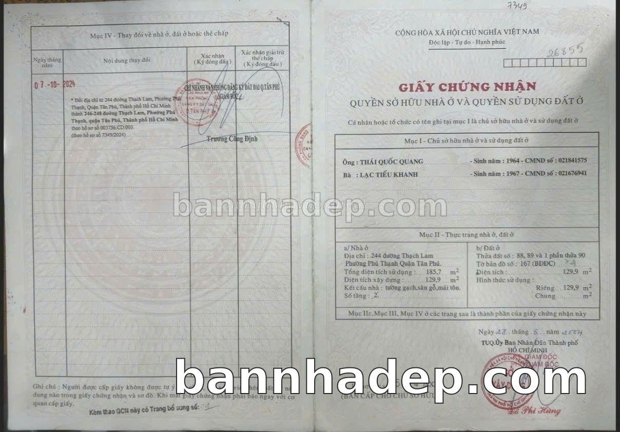 BÁN NHÀ MẶT TIỀN Số 246-248 Thạch Lam Phường Hòa Thạnh Quận Tân Phú TP. Hồ Chí Minh – GẦN TRƯỜNG HỌC QUỐC TẾ – GIÁ TỐT 20,8 TỶ Bán nhà mặt tiền tại Số 246-248 Thạch Lam Phường Hòa Thạnh Quận Tân Phú TP. Hồ Chí Minh – vị trí đắc địa. Thông tin chi tiết: • Địa chỉ: Số 246-248 Thạch Lam Phường Hòa Thạnh Quận Tân Phú TP. Hồ Chí Minh • Diện tích: 7.0m x 18.5m, không gian thoáng đãng • Vị trí: Mặt tiền đường Thạch Lam, gần chợ, khu vực sầm uất, đông đúc • Pháp lý: Sổ hồng riêng, sẵn sàng sang tên • Giá bán: 20,8 Tỷ (giá tốt, có thể thương lượng) Ưu thế vượt trội: • Khu vực phát triển, tiềm năng tăng trưởng cao • Vị trí trung tâm Quận Tân Phú, thuận tiện kết nối Quận 1, 3, 5 • Phù hợp kinh doanh dài hạn, ổn định • Mặt tiền rộng, giá trị khai thác thương mại cao