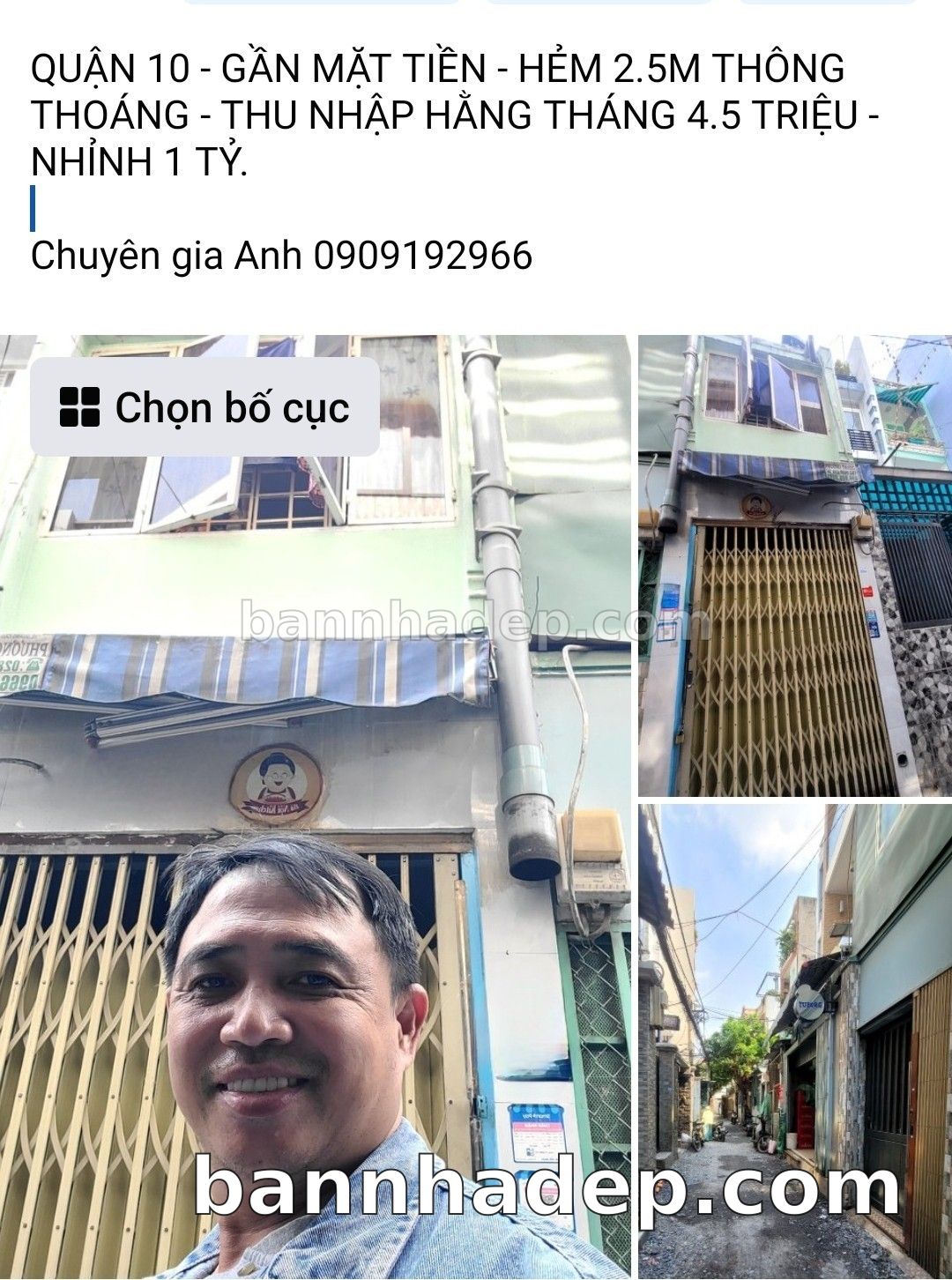 QUẬN 10 – TRỆT LẦU – GẦN MẶT TIỀN – HẺM 2.5M THÔNG THOÁNG – DÒNG TIỀN SẴN 4.5 TRIỆU – NHỈNH 1 TỶ. – Kết cấu trệt lầu, thông sàn, còn đẹp ở ngay. – Hẻm thông CMT8, Tô Hiến Thành, Hòa Hưng. – Bán kính 400m tiện nghi đầy đủ không thiếu gì. – Hiện đang cho thuê 4.5 triệu, khách thuê sẵn lòng thuê tiếp. – Chủ thiện chí bán, Vi bằng ngay và luôn. NHÀ ĐANG CHO THUÊ BAN NGÀY CHỈ XEM VỊ TRÍ, XEM TRONG BUỔI TỐI. Anh em khảo sát kỹ, dẫn khách báo Chuyên gia Anh trước 60 phút.