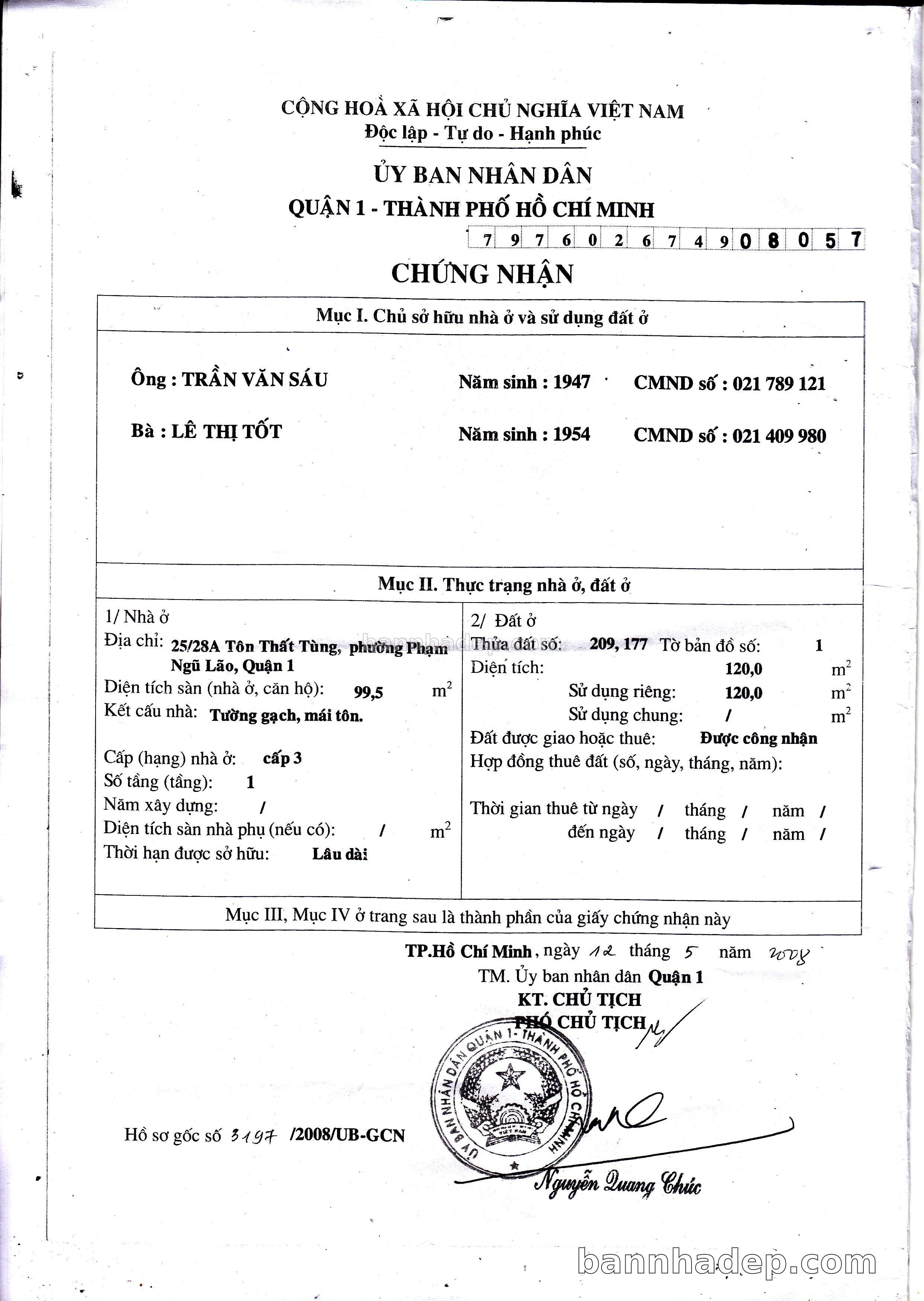 Bán nhà 25/28A Tôn Thất Tùng phường Phạm Ngũ Lão quận 1