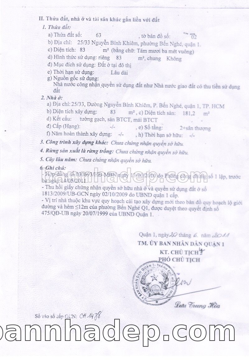 Bán nhà 25/33 Nguyễn Bỉnh Khiêm phường Bến Nghé quận 1