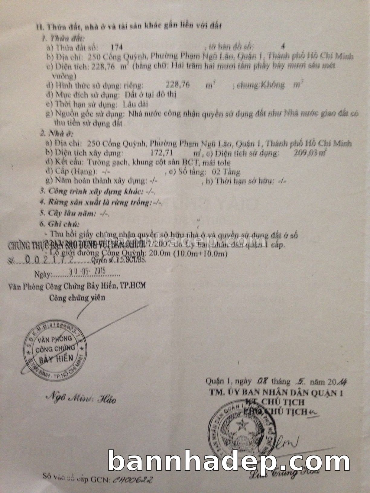 BÁN NHÀ Mặt tiền Số 250 Cống Quỳnh phường Phạm Ngũ Lão quận 1 TP. Hồ Chí Minh – GẦN CÔNG VIÊN GIẢI TRÍ – GIÁ TỐT Cần bán gấp nhà Mặt tiền tại Số 250 Cống Quỳnh phường Phạm Ngũ Lão quận 1 TP. Hồ Chí Minh – tiềm năng kinh doanh cao. Thông tin chi tiết: • Địa chỉ: Số 250 Cống Quỳnh phường Phạm Ngũ Lão quận 1 TP. Hồ Chí Minh • Diện tích: như trong sổ, không gian lý tưởng • Vị trí: Mặt tiền đường Cống Quỳnh, gần trung tâm thương mại lớn, khu vực sầm uất, tiềm năng kinh doanh cao • Pháp lý: Sổ hồng riêng, không tranh chấp, sẵn sàng giao dịch • Giá bán: Thoả Thuận (còn thương lượng với khách thiện chí) Lợi thế đặc biệt: • Vị trí trung tâm Quận 1 • Giao thông thuận tiện, kết nối các quận trung tâm • Phù hợp kinh doanh dài hạn, ổn định • Khu vực sầm uất, tiềm năng kinh doanh tốt