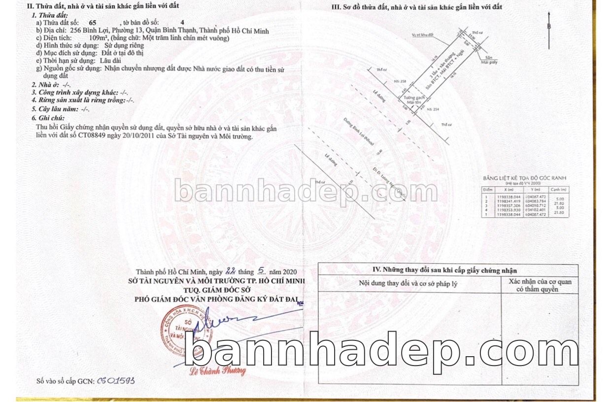 Bán nhà Thửa đất số 250, Tờ bản đồ 37 Nguyễn Ngọc Phương phường 01 quận Bình Thạnh