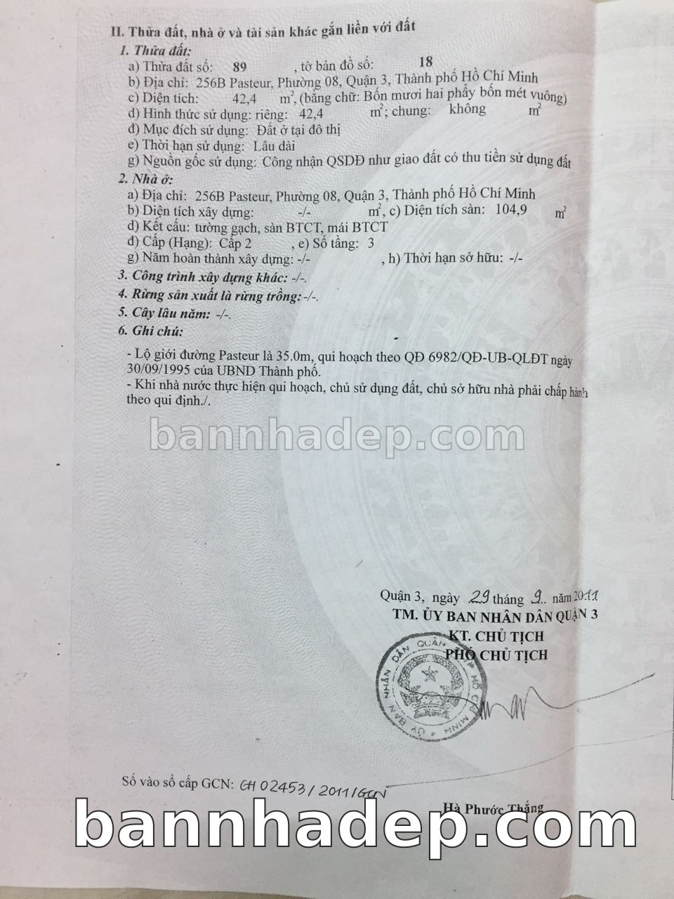 BÁN NHÀ Mặt tiền Số 256B Pasteur phường 08 quận 3 TP. Hồ Chí Minh – GẦN CÔNG VIÊN GIẢI TRÍ – GIÁ TỐT Cần bán gấp nhà Mặt tiền tại Số 256B Pasteur phường 08 quận 3 TP. Hồ Chí Minh – tiềm năng kinh doanh cao. Thông tin chi tiết: • Địa chỉ: Số 256B Pasteur phường 08 quận 3 TP. Hồ Chí Minh • Diện tích: như trong sổ, không gian lý tưởng • Vị trí: Mặt tiền đường Pasteur, gần trung tâm thương mại lớn, khu vực sầm uất, tiềm năng kinh doanh cao • Pháp lý: Sổ hồng riêng, không tranh chấp, sẵn sàng giao dịch • Giá bán: Thoả Thuận (còn thương lượng với khách thiện chí) Lợi thế đặc biệt: • Vị trí trung tâm Quận 3 • Giao thông thuận tiện, kết nối các quận trung tâm • Phù hợp kinh doanh dài hạn, ổn định • Khu vực sầm uất, tiềm năng kinh doanh tốt