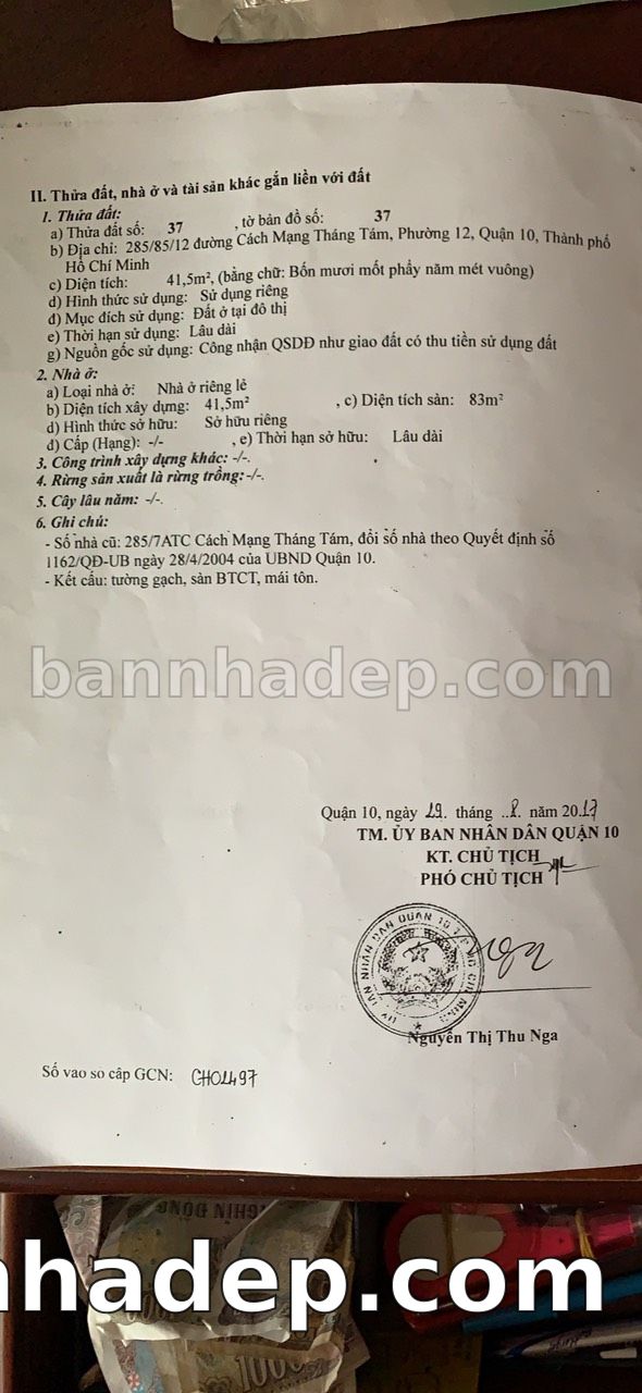 BÁN NHÀ Đường hẻm Số 258/85/12 Cách Mạng Tháng Tám phường 01 quận 10 TP. Hồ Chí Minh – GẦN CÔNG VIÊN GIẢI TRÍ – GIÁ TỐT Cần bán gấp nhà Đường hẻm tại Số 258/85/12 Cách Mạng Tháng Tám phường 01 quận 10 TP. Hồ Chí Minh – tiềm năng kinh doanh cao. Thông tin chi tiết: • Địa chỉ: Số 258/85/12 Cách Mạng Tháng Tám phường 01 quận 10 TP. Hồ Chí Minh • Diện tích: như trong sổ, không gian lý tưởng • Vị trí: Đường hẻm đường Cách Mạng Tháng Tám, gần trung tâm thương mại lớn, khu vực sầm uất, tiềm năng kinh doanh cao • Pháp lý: Sổ hồng riêng, không tranh chấp, sẵn sàng giao dịch • Giá bán: Thoả Thuận (còn thương lượng với khách thiện chí) Lợi thế đặc biệt: • Vị trí trung tâm Quận 10 • Giao thông thuận tiện, kết nối các quận trung tâm • Phù hợp kinh doanh dài hạn, ổn định • Khu vực sầm uất, tiềm năng kinh doanh tốt