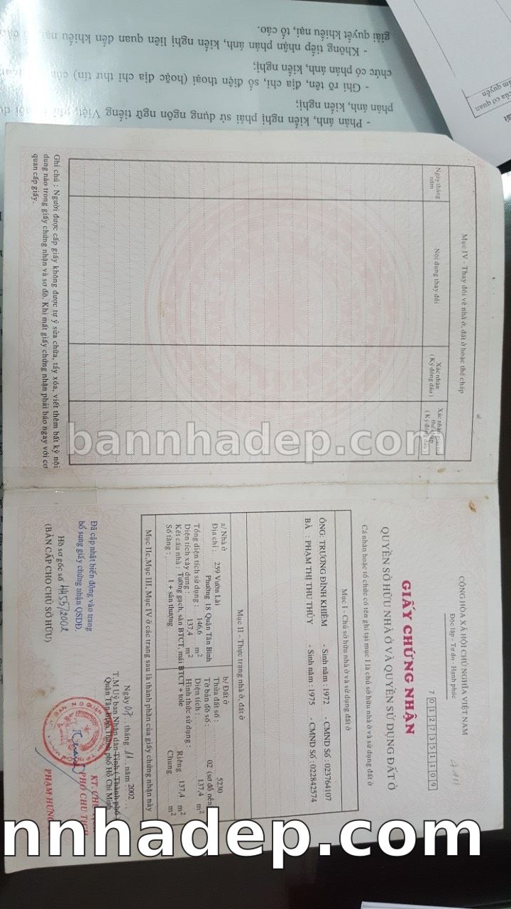 BÁN NHÀ Mặt tiền Số 259 Vườn Lài phường 01 quận Tân Bình TP. Hồ Chí Minh – GẦN CÔNG VIÊN GIẢI TRÍ – GIÁ TỐT Cần bán gấp nhà Mặt tiền tại Số 259 Vườn Lài phường 01 quận Tân Bình TP. Hồ Chí Minh – tiềm năng kinh doanh cao. Thông tin chi tiết: • Địa chỉ: Số 259 Vườn Lài phường 01 quận Tân Bình TP. Hồ Chí Minh • Diện tích: như trong sổ, không gian lý tưởng • Vị trí: Mặt tiền đường Vườn Lài, gần trung tâm thương mại lớn, khu vực sầm uất, tiềm năng kinh doanh cao • Pháp lý: Sổ hồng riêng, không tranh chấp, sẵn sàng giao dịch • Giá bán: Thoả Thuận (còn thương lượng với khách thiện chí) Lợi thế đặc biệt: • Vị trí trung tâm Quận Tân Bình • Giao thông thuận tiện, kết nối các quận trung tâm • Phù hợp kinh doanh dài hạn, ổn định • Khu vực sầm uất, tiềm năng kinh doanh tốt