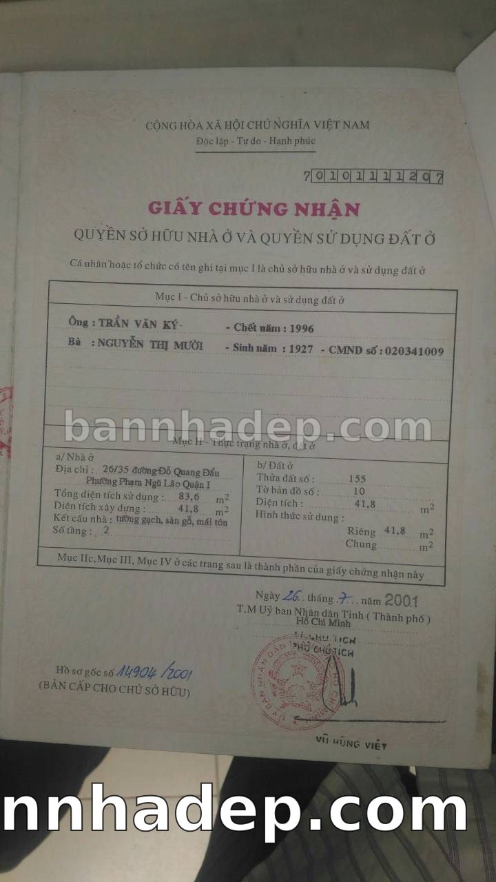 Bán nhà 26/35 Đỗ Quang Đẩu phường Phạm Ngũ Lão quận 1