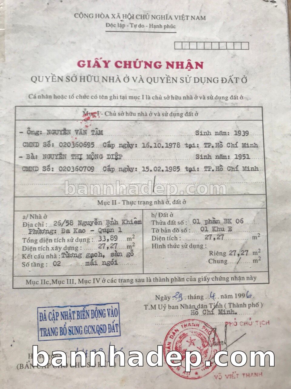 BÁN NHÀ Đường hẻm Số 26/58 Nguyễn Bỉnh Khiêm phường Đa Kao quận 1 TP. Hồ Chí Minh – GẦN CÔNG VIÊN GIẢI TRÍ – GIÁ TỐT Cần bán gấp nhà Đường hẻm tại Số 26/58 Nguyễn Bỉnh Khiêm phường Đa Kao quận 1 TP. Hồ Chí Minh – tiềm năng kinh doanh cao. Thông tin chi tiết: • Địa chỉ: Số 26/58 Nguyễn Bỉnh Khiêm phường Đa Kao quận 1 TP. Hồ Chí Minh • Diện tích: như trong sổ, không gian lý tưởng • Vị trí: Đường hẻm đường Nguyễn Bỉnh Khiêm, gần trung tâm thương mại lớn, khu vực sầm uất, tiềm năng kinh doanh cao • Pháp lý: Sổ hồng riêng, không tranh chấp, sẵn sàng giao dịch • Giá bán: Thoả Thuận (còn thương lượng với khách thiện chí) Lợi thế đặc biệt: • Vị trí trung tâm Quận 1 • Giao thông thuận tiện, kết nối các quận trung tâm • Phù hợp kinh doanh dài hạn, ổn định • Khu vực sầm uất, tiềm năng kinh doanh tốt