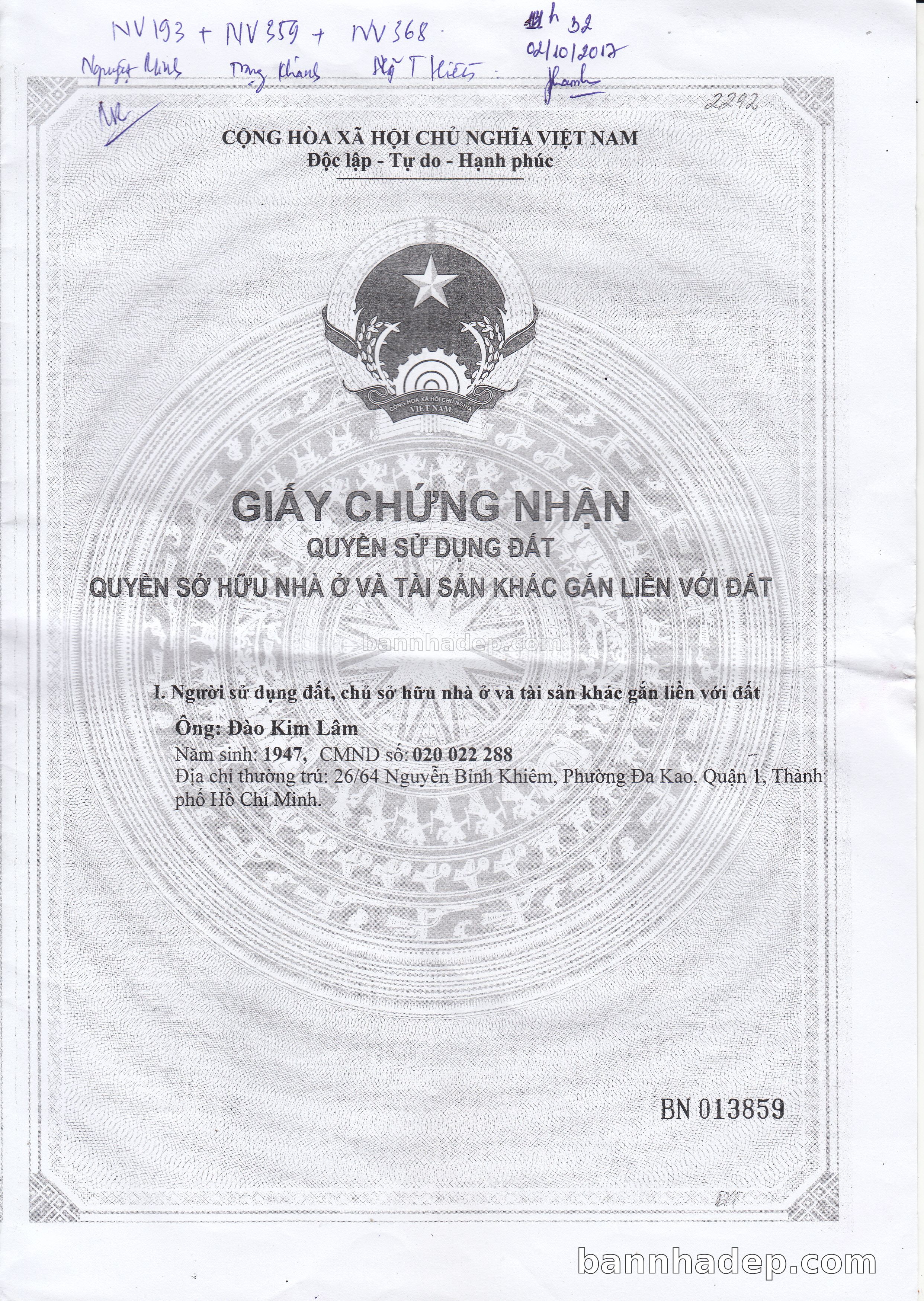 Bán nhà 26/64 Nguyễn Bỉnh Khiêm phường Đa Kao quận 1