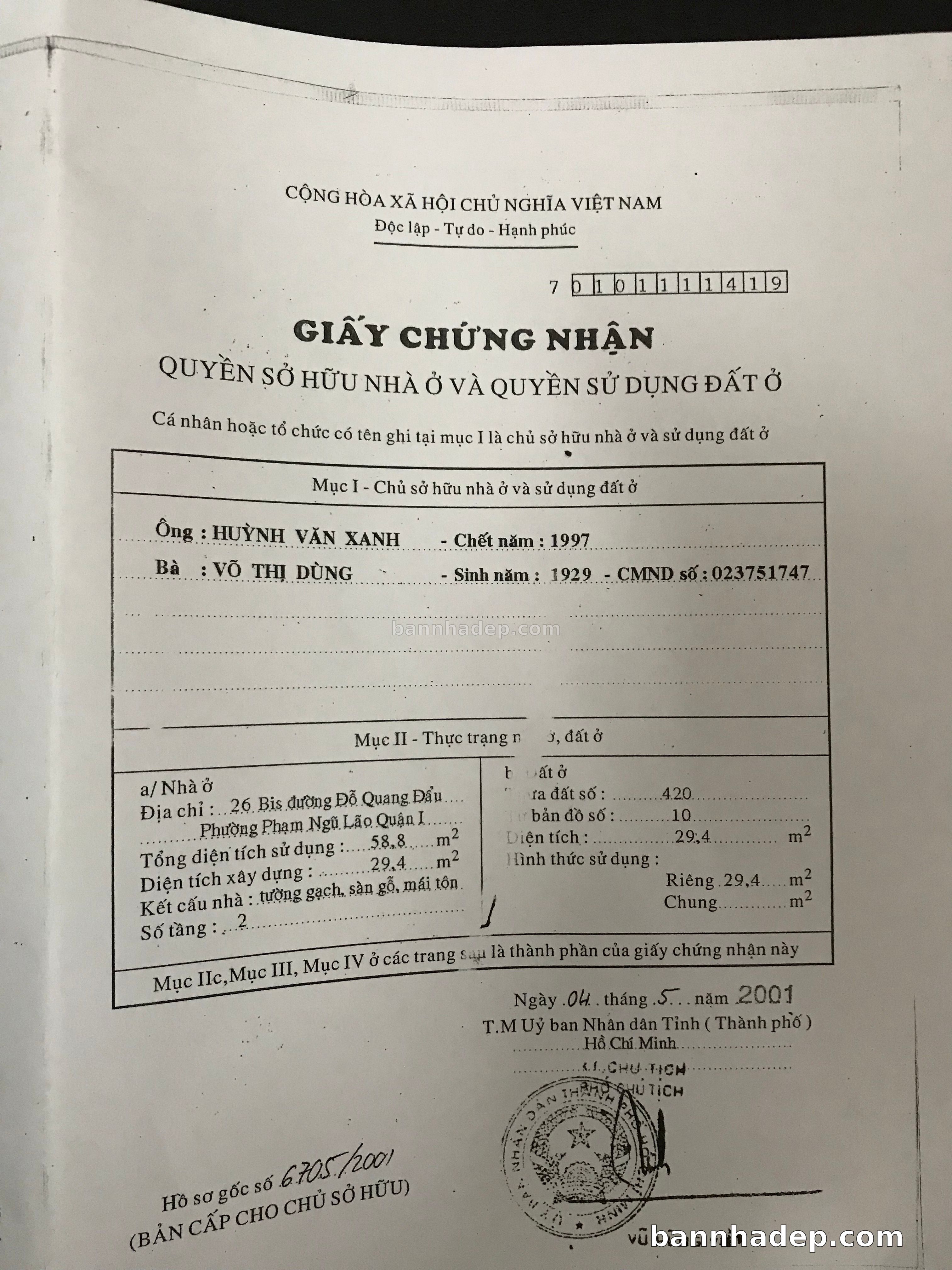 BÁN NHÀ Mặt tiền Số 26 Bis Đỗ Quang Đẫu phường Phạm Ngũ Lão quận 1 TP. Hồ Chí Minh – GẦN CÔNG VIÊN GIẢI TRÍ – GIÁ TỐT Cần bán gấp nhà Mặt tiền tại Số 26 Bis Đỗ Quang Đẫu phường Phạm Ngũ Lão quận 1 TP. Hồ Chí Minh – tiềm năng kinh doanh cao. Thông tin chi tiết: • Địa chỉ: Số 26 Bis Đỗ Quang Đẫu phường Phạm Ngũ Lão quận 1 TP. Hồ Chí Minh • Diện tích: như trong sổ, không gian lý tưởng • Vị trí: Mặt tiền đường Đỗ Quang Đẫu, gần trung tâm thương mại lớn, khu vực sầm uất, tiềm năng kinh doanh cao • Pháp lý: Sổ hồng riêng, không tranh chấp, sẵn sàng giao dịch • Giá bán: Thoả Thuận (còn thương lượng với khách thiện chí) Lợi thế đặc biệt: • Vị trí trung tâm Quận 1 • Giao thông thuận tiện, kết nối các quận trung tâm • Phù hợp kinh doanh dài hạn, ổn định • Khu vực sầm uất, tiềm năng kinh doanh tốt