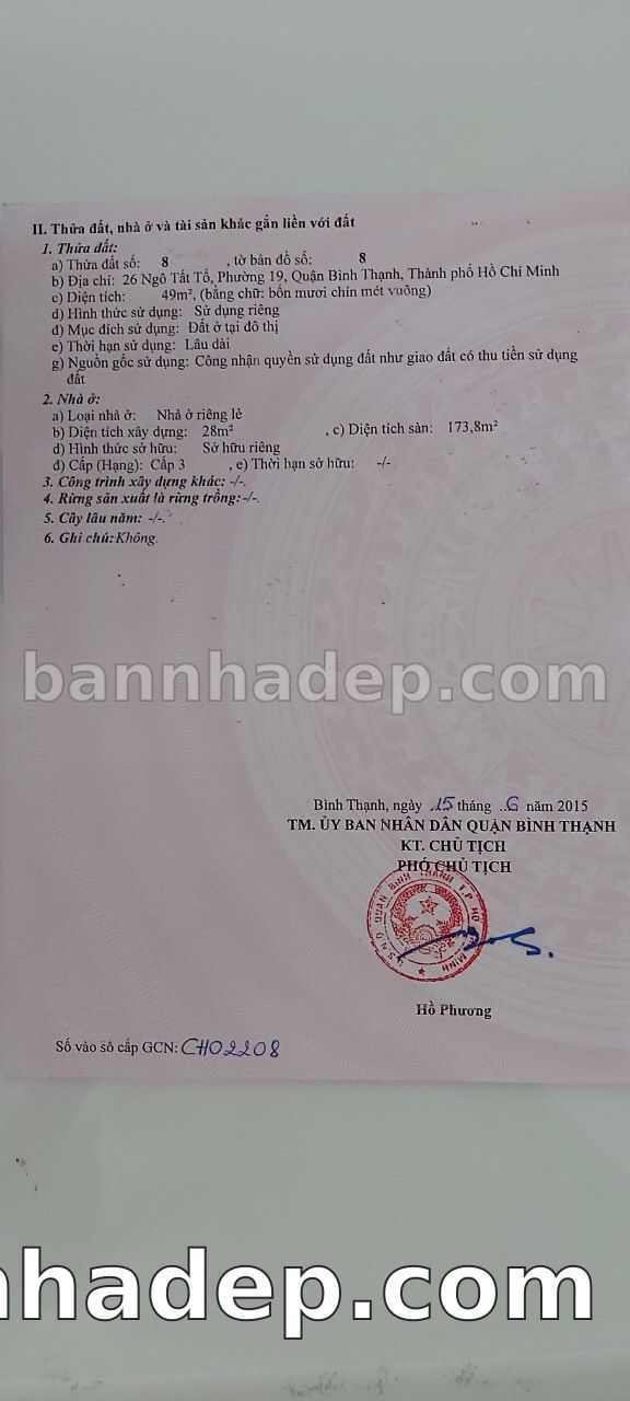 BÁN NHÀ Mặt tiền Số 26 Ngô Tất Tố phường 01 quận Bình Thạnh TP. Hồ Chí Minh – GẦN CÔNG VIÊN GIẢI TRÍ – GIÁ TỐT Cần bán gấp nhà Mặt tiền tại Số 26 Ngô Tất Tố phường 01 quận Bình Thạnh TP. Hồ Chí Minh – tiềm năng kinh doanh cao. Thông tin chi tiết: • Địa chỉ: Số 26 Ngô Tất Tố phường 01 quận Bình Thạnh TP. Hồ Chí Minh • Diện tích: như trong sổ, không gian lý tưởng • Vị trí: Mặt tiền đường Ngô Tất Tố, gần trung tâm thương mại lớn, khu vực sầm uất, tiềm năng kinh doanh cao • Pháp lý: Sổ hồng riêng, không tranh chấp, sẵn sàng giao dịch • Giá bán: Thoả Thuận (còn thương lượng với khách thiện chí) Lợi thế đặc biệt: • Vị trí trung tâm Quận Bình Thạnh • Giao thông thuận tiện, kết nối các quận trung tâm • Phù hợp kinh doanh dài hạn, ổn định • Khu vực sầm uất, tiềm năng kinh doanh tốt