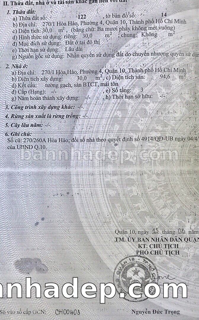 BÁN NHÀ Đường hẻm Số 270/1 Hòa Hảo phường 04 quận 10 TP. Hồ Chí Minh – GẦN CÔNG VIÊN GIẢI TRÍ – GIÁ TỐT Cần bán gấp nhà Đường hẻm tại Số 270/1 Hòa Hảo phường 04 quận 10 TP. Hồ Chí Minh – tiềm năng kinh doanh cao. Thông tin chi tiết: • Địa chỉ: Số 270/1 Hòa Hảo phường 04 quận 10 TP. Hồ Chí Minh • Diện tích: như trong sổ, không gian lý tưởng • Vị trí: Đường hẻm đường Hòa Hảo, gần trung tâm thương mại lớn, khu vực sầm uất, tiềm năng kinh doanh cao • Pháp lý: Sổ hồng riêng, không tranh chấp, sẵn sàng giao dịch • Giá bán: Thoả Thuận (còn thương lượng với khách thiện chí) Lợi thế đặc biệt: • Vị trí trung tâm Quận 10 • Giao thông thuận tiện, kết nối các quận trung tâm • Phù hợp kinh doanh dài hạn, ổn định • Khu vực sầm uất, tiềm năng kinh doanh tốt