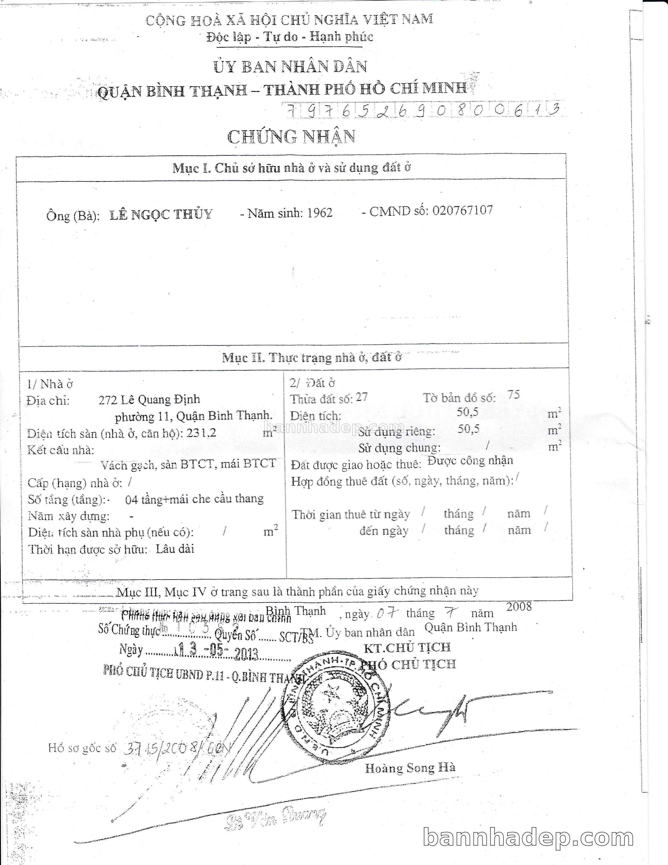BÁN NHÀ Mặt tiền Số 272 Lê Quang Định phường 01 quận Bình Thạnh TP. Hồ Chí Minh – GẦN CÔNG VIÊN GIẢI TRÍ – GIÁ TỐT Cần bán gấp nhà Mặt tiền tại Số 272 Lê Quang Định phường 01 quận Bình Thạnh TP. Hồ Chí Minh – tiềm năng kinh doanh cao. Thông tin chi tiết: • Địa chỉ: Số 272 Lê Quang Định phường 01 quận Bình Thạnh TP. Hồ Chí Minh • Diện tích: như trong sổ, không gian lý tưởng • Vị trí: Mặt tiền đường Lê Quang Định, gần trung tâm thương mại lớn, khu vực sầm uất, tiềm năng kinh doanh cao • Pháp lý: Sổ hồng riêng, không tranh chấp, sẵn sàng giao dịch • Giá bán: Thoả Thuận (còn thương lượng với khách thiện chí) Lợi thế đặc biệt: • Vị trí trung tâm Quận Bình Thạnh • Giao thông thuận tiện, kết nối các quận trung tâm • Phù hợp kinh doanh dài hạn, ổn định • Khu vực sầm uất, tiềm năng kinh doanh tốt