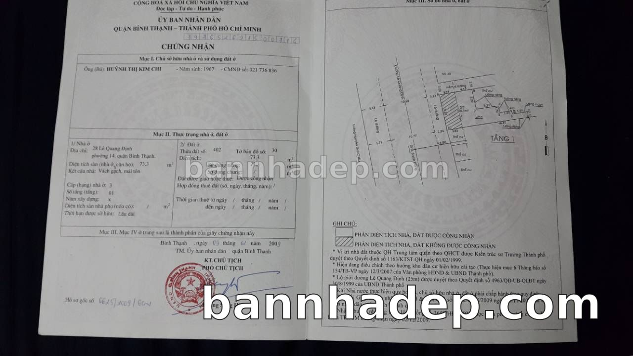 BÁN NHÀ Mặt tiền Số 28 Lê Quang Định phường 01 quận Bình Thạnh TP. Hồ Chí Minh – GẦN CÔNG VIÊN GIẢI TRÍ – GIÁ TỐT Cần bán gấp nhà Mặt tiền tại Số 28 Lê Quang Định phường 01 quận Bình Thạnh TP. Hồ Chí Minh – tiềm năng kinh doanh cao. Thông tin chi tiết: • Địa chỉ: Số 28 Lê Quang Định phường 01 quận Bình Thạnh TP. Hồ Chí Minh • Diện tích: như trong sổ, không gian lý tưởng • Vị trí: Mặt tiền đường Lê Quang Định, gần trung tâm thương mại lớn, khu vực sầm uất, tiềm năng kinh doanh cao • Pháp lý: Sổ hồng riêng, không tranh chấp, sẵn sàng giao dịch • Giá bán: Thoả Thuận (còn thương lượng với khách thiện chí) Lợi thế đặc biệt: • Vị trí trung tâm Quận Bình Thạnh • Giao thông thuận tiện, kết nối các quận trung tâm • Phù hợp kinh doanh dài hạn, ổn định • Khu vực sầm uất, tiềm năng kinh doanh tốt