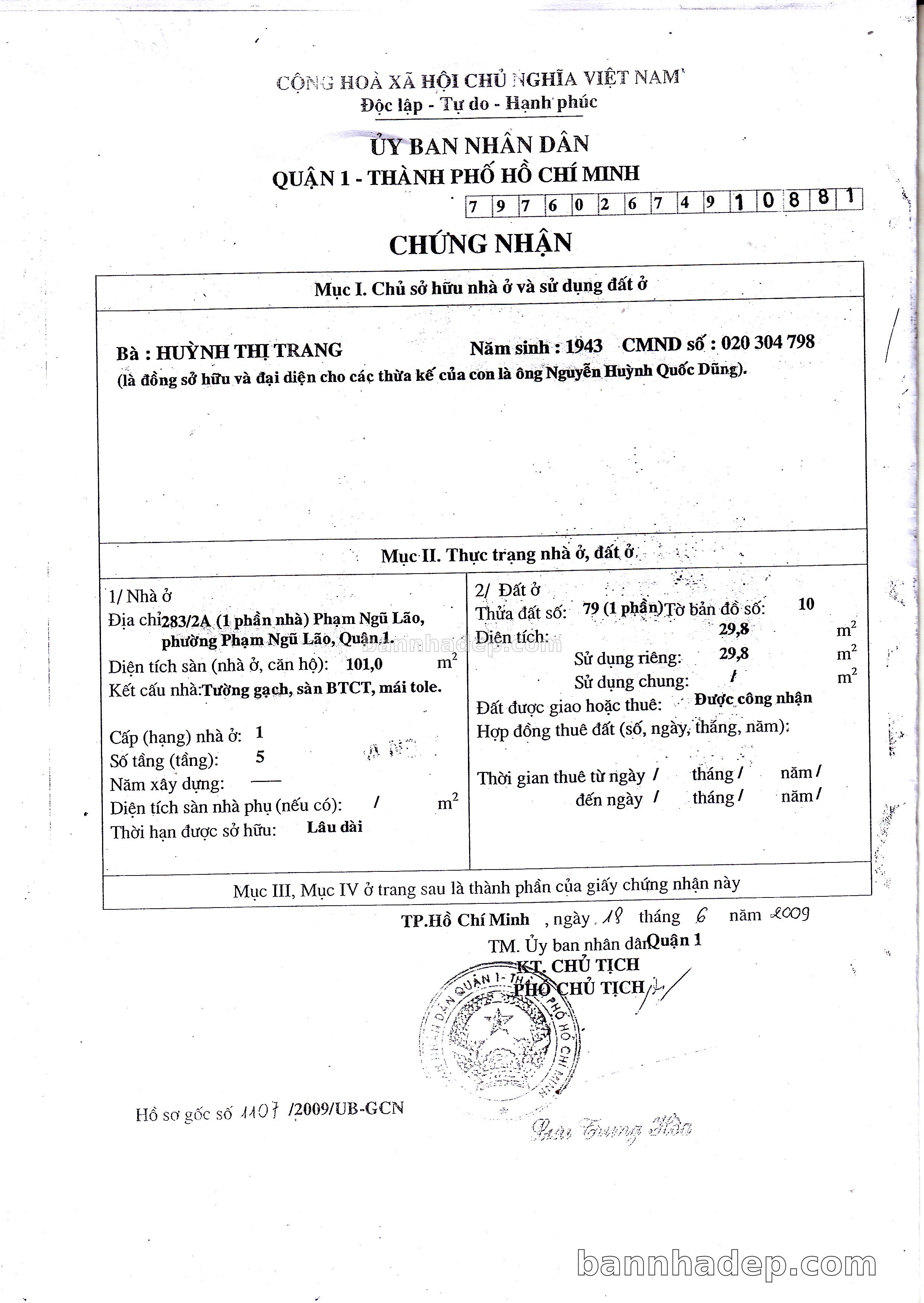 Bán nhà 283/2A Phạm Ngũ Lão phường Phạm Ngũ Lão quận 1