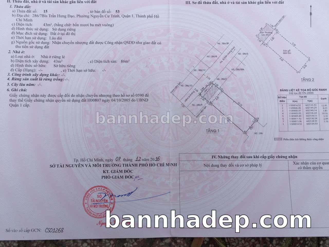 Bán nhà 286/7Bis Trần Hưng Đạo phường Nguyễn Cư Trinh quận 1
