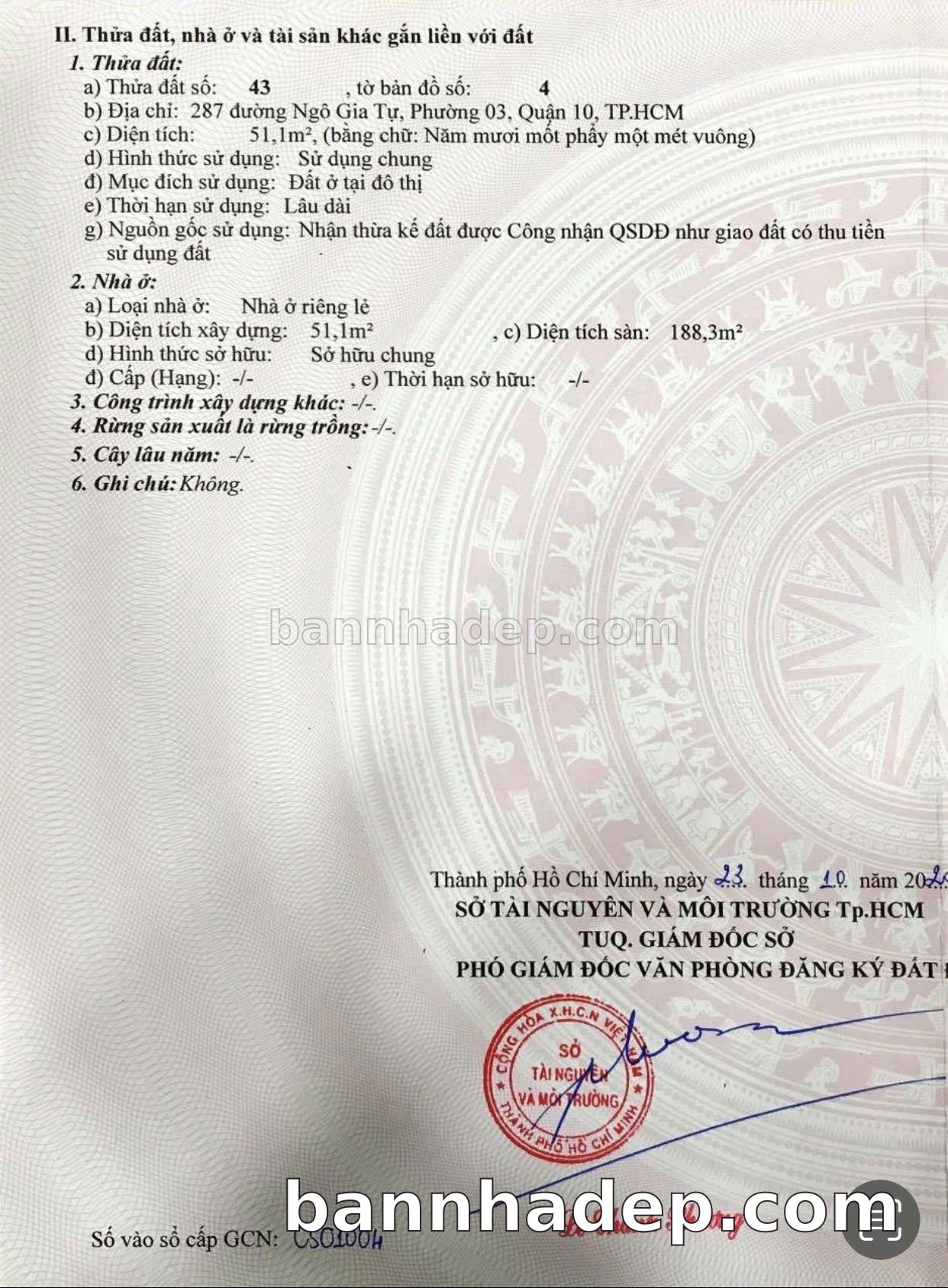 BÁN NHÀ MẶT TIỀN Số 287 Ngô Gia Tự Phường 2 Quận 10 TP. Hồ Chí Minh – GẦN TRƯỜNG HỌC QUỐC TẾ – GIÁ CỰC TỐT 20 TỶ Bán nhà mặt tiền tại Số 287 Ngô Gia Tự Phường 2 Quận 10 TP. Hồ Chí Minh. Thông tin chi tiết: • Địa chỉ: Số 287 Ngô Gia Tự Phường 2 Quận 10 TP. Hồ Chí Minh • Diện tích: 3.3m x 17.0m, không gian lý tưởng • Vị trí: Mặt tiền đường Ngô Gia Tự sầm uất, gần trung tâm thương mại lớn, khu vực dân cư đông đúc, lưu lượng xe cộ lớn – cực kỳ thích hợp kinh doanh mọi ngành nghề: cửa hàng thời trang, café, spa, nha khoa, văn phòng đại diện • Pháp lý: Sổ hồng riêng, không tranh chấp, sẵn sàng giao dịch • Giá bán: 20 Tỷ (giá tốt cho khách thiện chí) Ưu thế cạnh tranh: • Vị trí trung tâm Quận 10, thuận tiện kết nối Quận 1, 3, 4 • Giao thông thuận tiện, kết nối các quận trung tâm • Khu vực sầm uất, lưu lượng khách hàng lớn • Khu vực phát triển, tiềm năng tăng trưởng cao