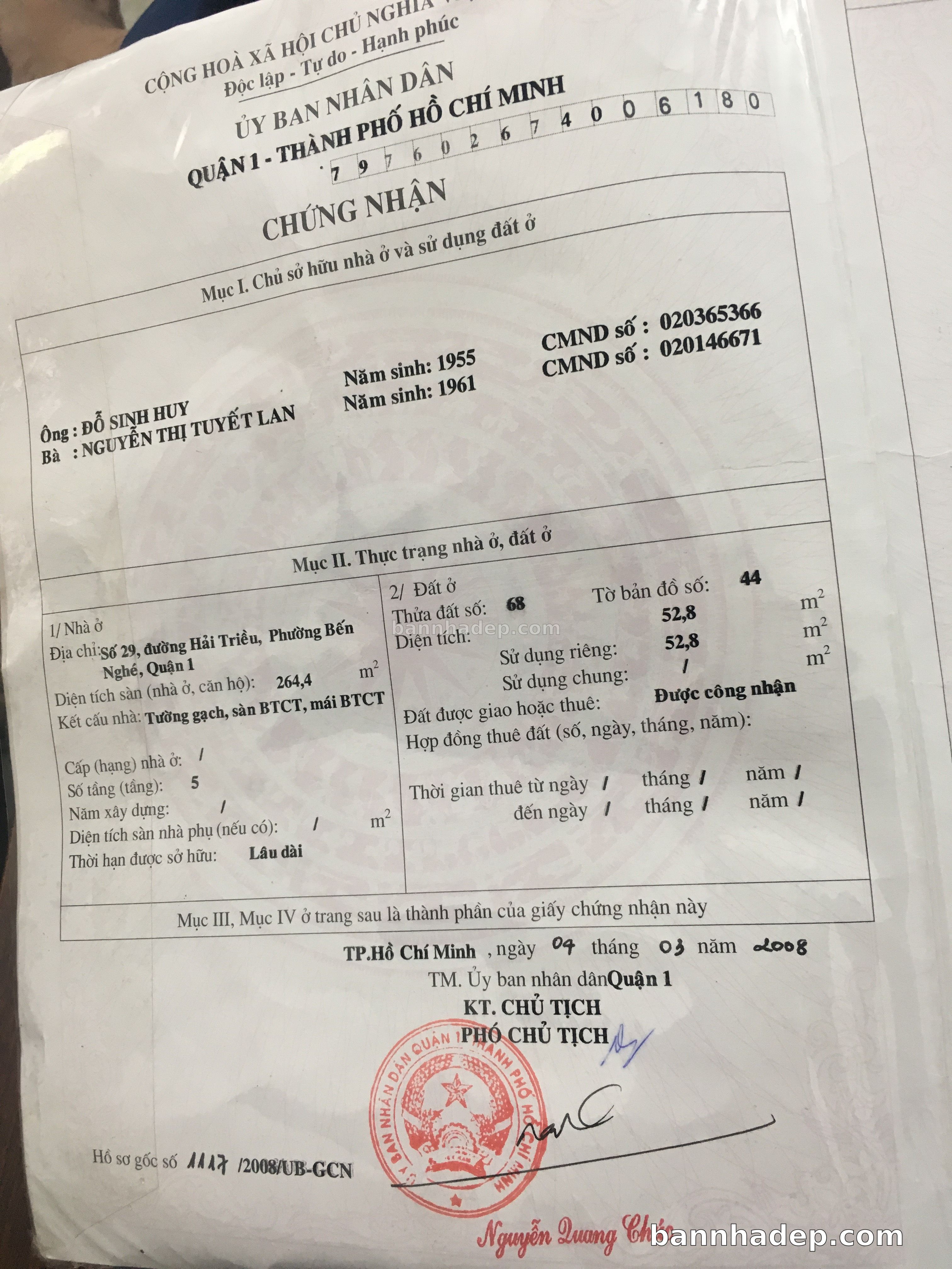 Bán nhà 29 Hải Triều phường Bến Nghé quận 1
