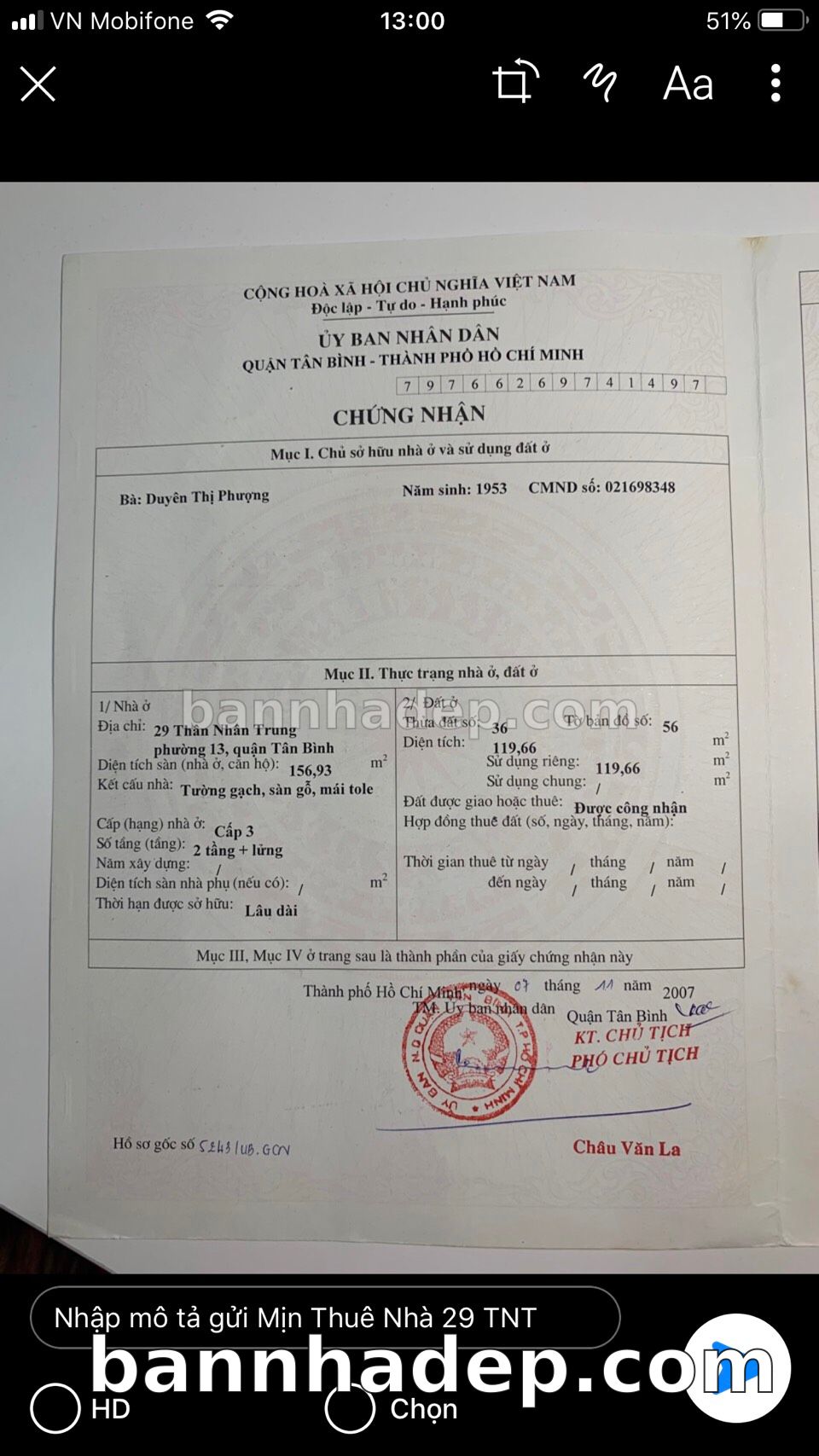 Bán nhà 29 Thân Nhân Tông phường 01 quận Tân Bình