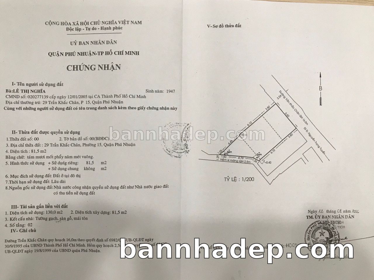 Bán nhà 150 tờ bản đồ số 1 phường 01 quận Phú Nhuận