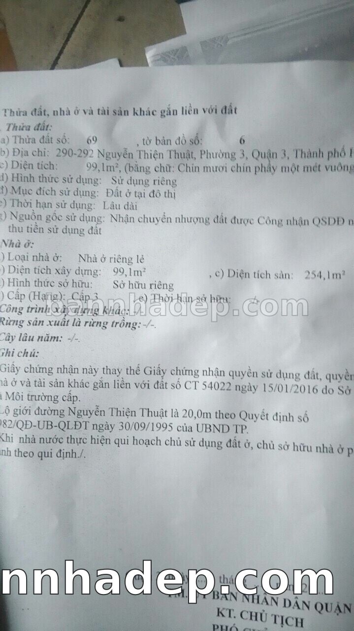 BÁN NHÀ Mặt tiền Số 290-292 Nguyễn Thiện Thuật phường 03 quận 3 TP. Hồ Chí Minh – GẦN CÔNG VIÊN GIẢI TRÍ – GIÁ TỐT Cần bán gấp nhà Mặt tiền tại Số 290-292 Nguyễn Thiện Thuật phường 03 quận 3 TP. Hồ Chí Minh – tiềm năng kinh doanh cao. Thông tin chi tiết: • Địa chỉ: Số 290-292 Nguyễn Thiện Thuật phường 03 quận 3 TP. Hồ Chí Minh • Diện tích: như trong sổ, không gian lý tưởng • Vị trí: Mặt tiền đường Nguyễn Thiện Thuật, gần trung tâm thương mại lớn, khu vực sầm uất, tiềm năng kinh doanh cao • Pháp lý: Sổ hồng riêng, không tranh chấp, sẵn sàng giao dịch • Giá bán: Thoả Thuận (còn thương lượng với khách thiện chí) Lợi thế đặc biệt: • Vị trí trung tâm Quận 3 • Giao thông thuận tiện, kết nối các quận trung tâm • Phù hợp kinh doanh dài hạn, ổn định • Khu vực sầm uất, tiềm năng kinh doanh tốt