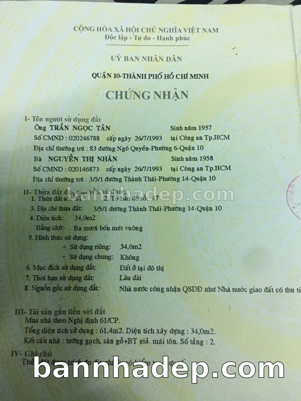 Bán nhà 79CT Tam Đảo phường 01 quận 10