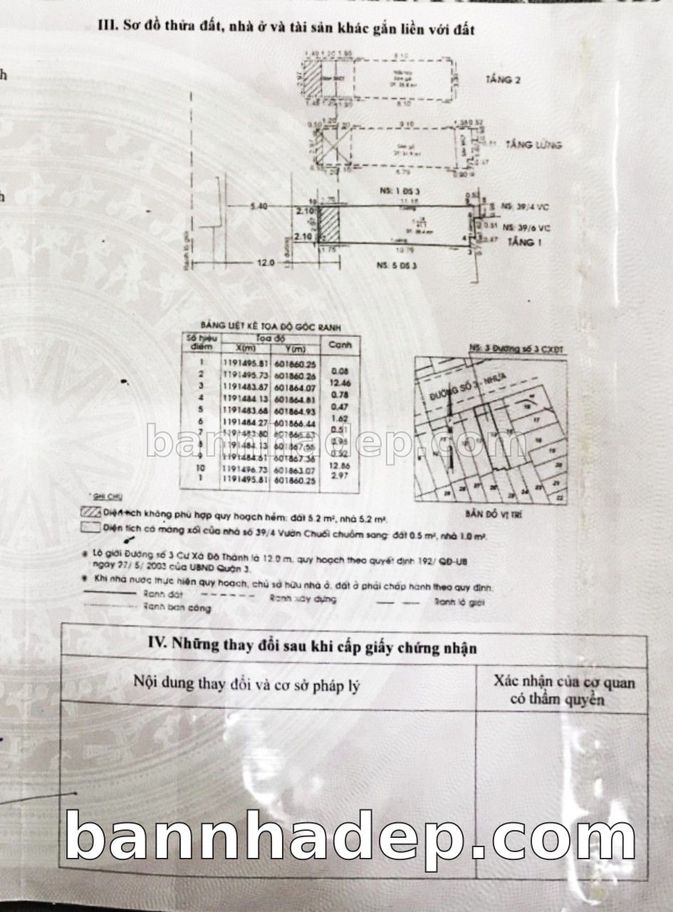 Bán nhà 6 Đường số 6 phường 04 quận 3