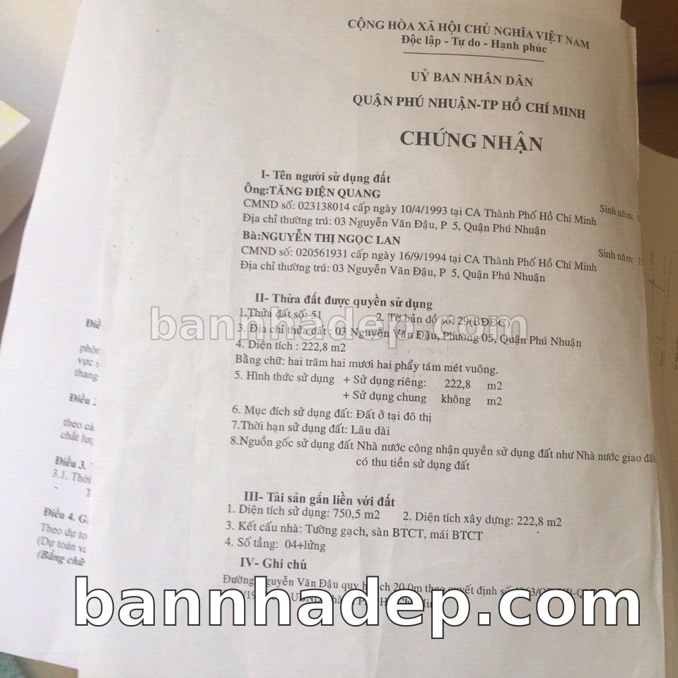 BÁN NHÀ Mặt tiền Số 3 Nguyễn Văn Đậu phường 05 quận Phú Nhuận TP. Hồ Chí Minh – GẦN CÔNG VIÊN GIẢI TRÍ – GIÁ TỐT Cần bán gấp nhà Mặt tiền tại Số 3 Nguyễn Văn Đậu phường 05 quận Phú Nhuận TP. Hồ Chí Minh – tiềm năng kinh doanh cao. Thông tin chi tiết: • Địa chỉ: Số 3 Nguyễn Văn Đậu phường 05 quận Phú Nhuận TP. Hồ Chí Minh • Diện tích: như trong sổ, không gian lý tưởng • Vị trí: Mặt tiền đường Nguyễn Văn Đậu, gần trung tâm thương mại lớn, khu vực sầm uất, tiềm năng kinh doanh cao • Pháp lý: Sổ hồng riêng, không tranh chấp, sẵn sàng giao dịch • Giá bán: Thoả Thuận (còn thương lượng với khách thiện chí) Lợi thế đặc biệt: • Vị trí trung tâm Quận Phú Nhuận • Giao thông thuận tiện, kết nối các quận trung tâm • Phù hợp kinh doanh dài hạn, ổn định • Khu vực sầm uất, tiềm năng kinh doanh tốt