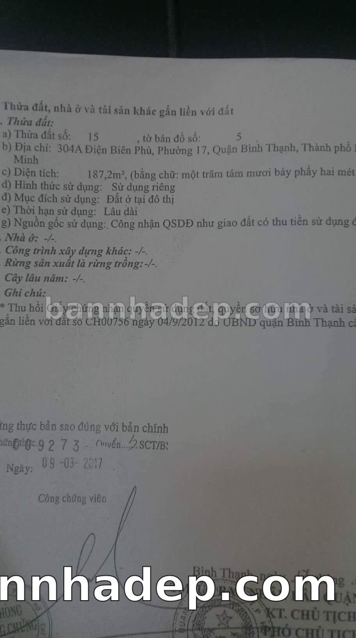 Bán nhà 304A Điện Biên Phủ phường 01 quận Bình Thạnh